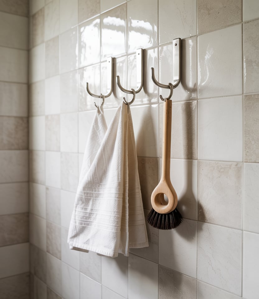 In tight layouts, vertical space becomes prime real estate. Wall hooks inspired by tiny living and compact small-space solutions work wonders for towels, brushes, or robes. They keep surfaces clear and add a warm, functional accent. Look for finishes that echo your fixtures to maintain cohesion without feeling too matchy-matchy. American lifestyle context: in many starter homes, bathrooms are surprisingly small, so anything that frees surface area feels like a luxury upgrade. Hooks near the shower reduce drips across the floor, and placing a spare hook near the vanity helps guests feel more considered.