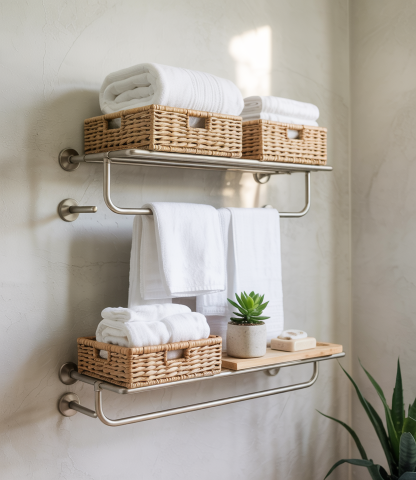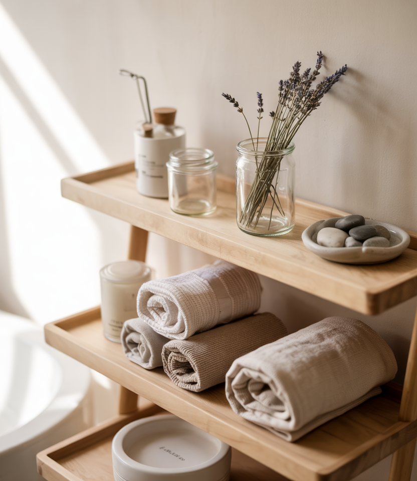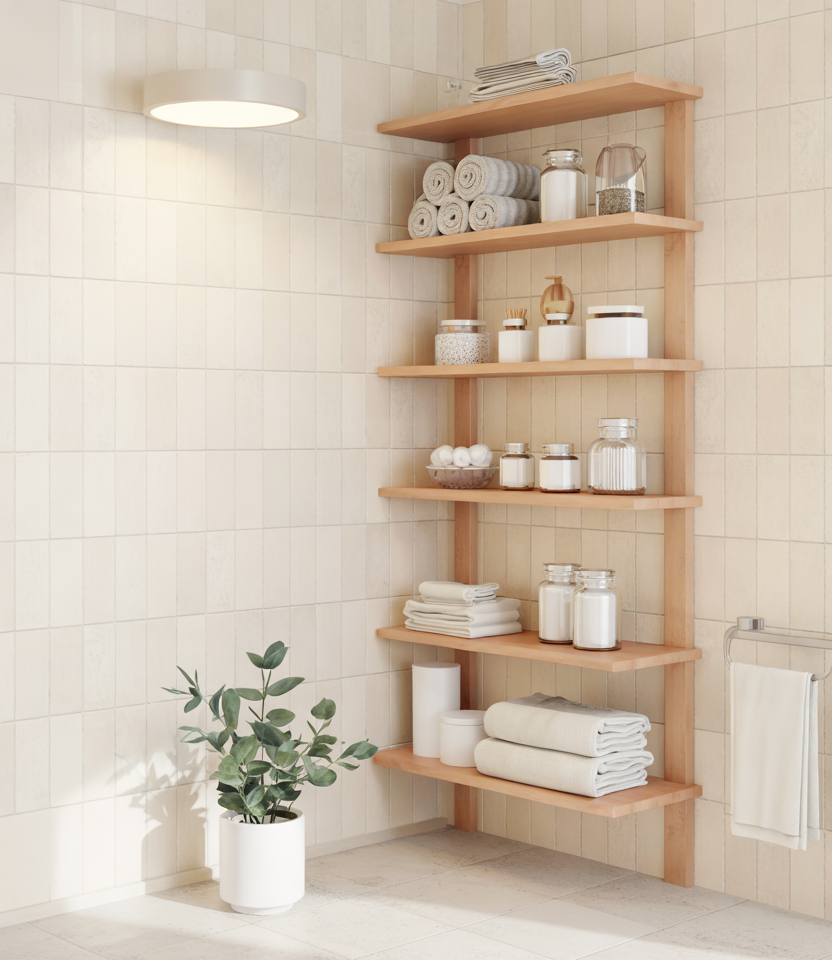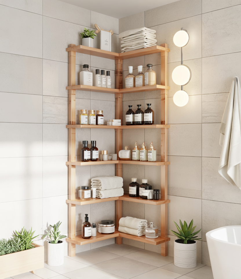 Corner shelf towers are a smart way to turn unused edges into functional storage. They suit compact bathroom organization trends in 2026 and fit beautifully into small space layouts where every inch matters. Choose slim units that echo your tile or flooring so they blend seamlessly while holding jars, towels, or fragrances. Practical insight: measure the distance from the baseboard to the wall angle—many corner units don’t sit flush if you skip this step. A snug fit keeps everything stable and prevents wobbling as you reach for daily items.