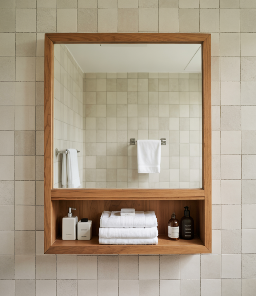 Adding a simple frame updates a medicine cabinet in an instant. The move is ideal for apartment dwellers or anyone looking for soft inspo that doesn’t call for heavy renovation. Adding a wood or brushed-metal frame warms things up while keeping the mirror storage behind fully functional. Budget angle: rather than replacing the entire cabinet, framing saves hundreds.