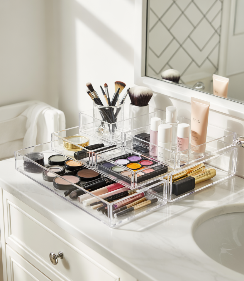If your morning routine revolves around makeup or daily skincare, dividers help turn a busy drawer into a personalized station. Slim acrylic grids keep palettes upright and brushes separated so everything stays visible. This not only speeds up getting ready but also protects delicate tools from rolling around. Real homeowner behavior: many people buy duplicates because they can’t see what they own. Transparent dividers solve that instantly, cutting down on clutter and unnecessary spending—and making products feel more special.