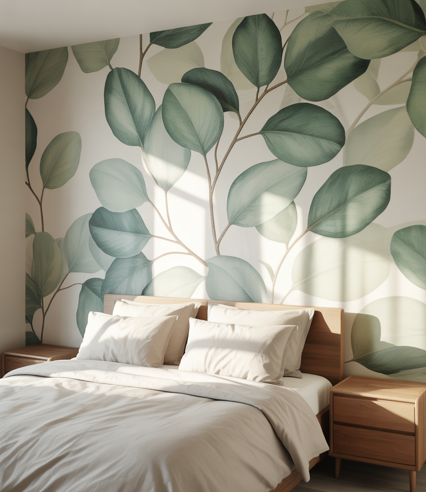 Large-repeat botanicals Bring a statement, bring outdoor calm without clutter. Install wallpaper behind the bed in Bring in the desaturated colors—eucalyptus or smoky green—so it ages gracefully. Removable paper means zero-stress commitment, great for renters. Balance with plain paint on adjacent walls and let one vase echo the motif. It’s soothing, not sugary, and fits 2026’s nature-first designs for real homes with window light.