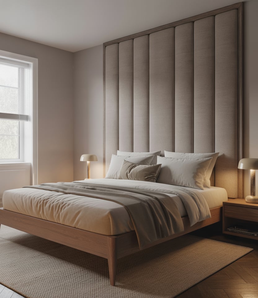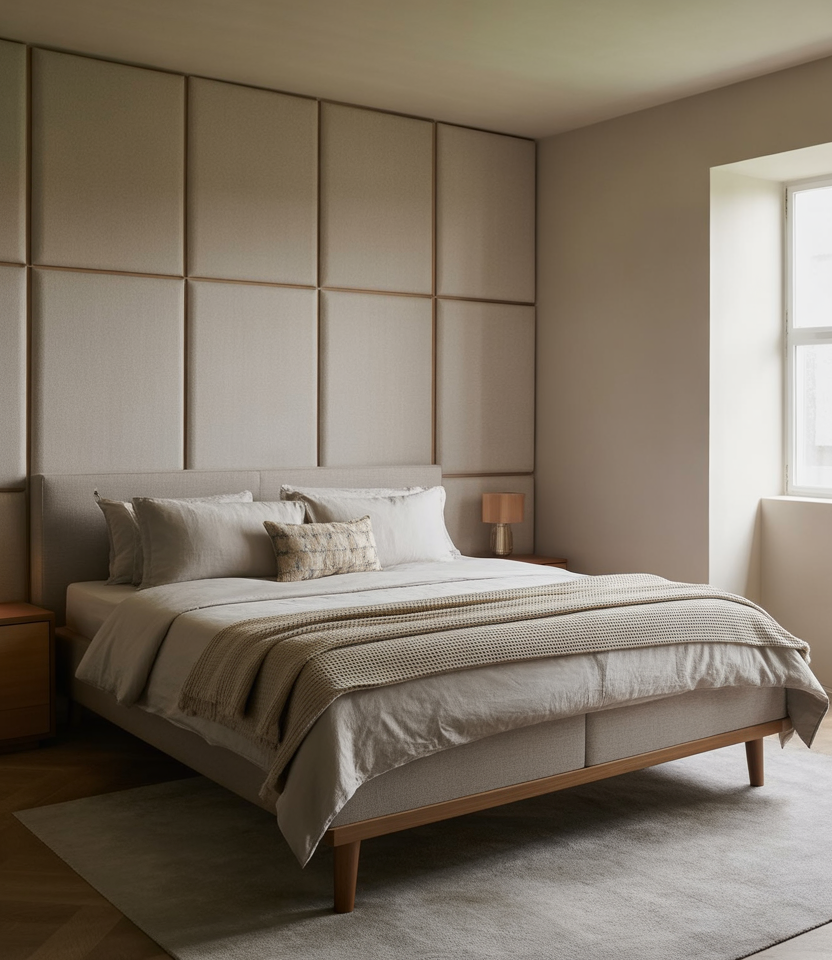 Stretch linen or wool over acoustic boards behind the bed for hush and hotel calm. Nature-tuned colors—sage green and sand—pair with crisp paint elsewhere. This 2026 upgrade suits apartments with window street sounds and early risers. Trim edges with slim oak so it feels tailored. It’s investment décor that also improves sleep—form meeting function in real-life designs.