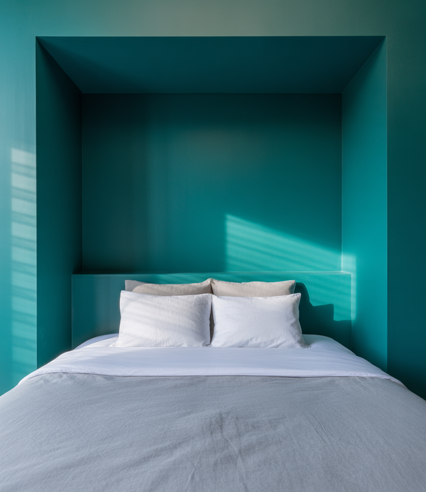Create a shallow niche and saturate the recess in inky colors. Live or teal paint makes the bed feel framed behind the bed, hides cords, and adds shadows that look high-end. With a window nearby, the tone shifts through the day—a tiny bit of daily theater. It’s one of 2026’s smartest design tricks, landing on every shortlist of ideas for paint colors for drama without clutter.