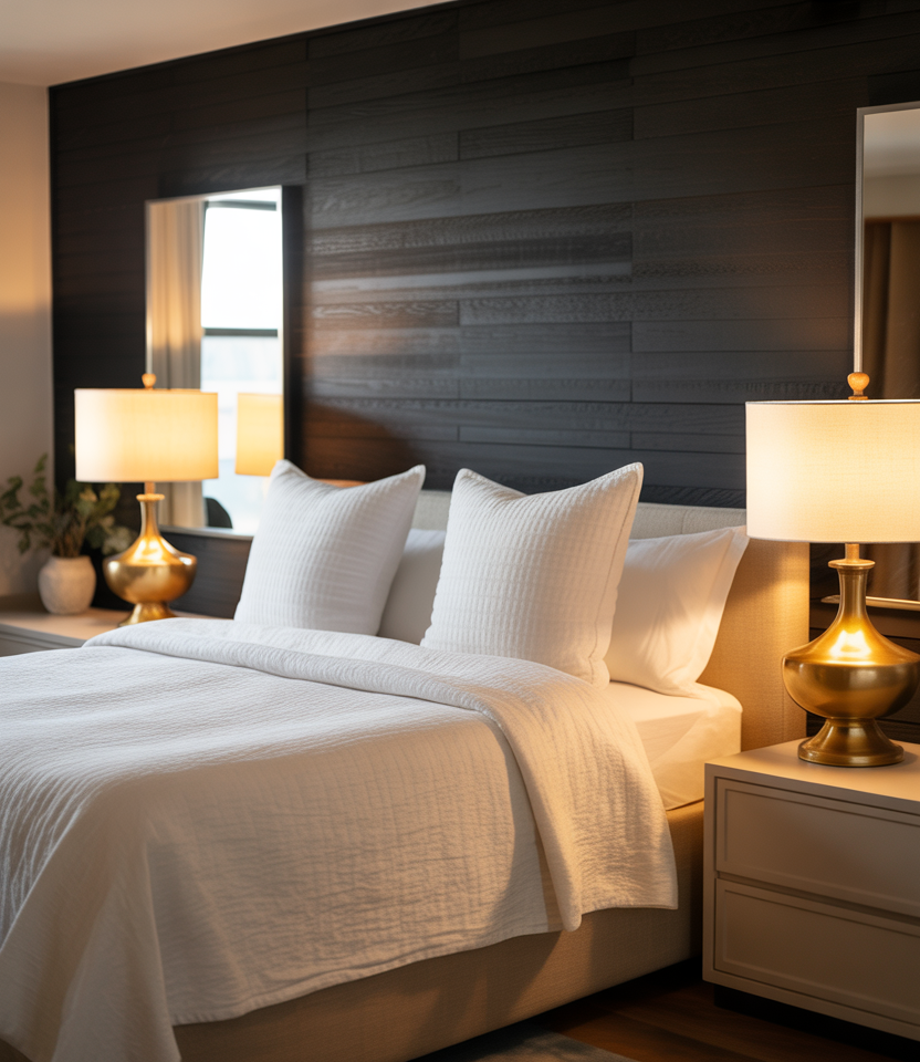 Fabric panels give the hotel a cozy feel and soften echoes behind the bed. Choose a hotel. the bed. mineral colors and performance textiles, then keep side walls in crisp paint. Great for apartments with window street noise, this look reads elevated but livable. A narrow wood frame outlines the field so it feels tailored. It’s a sensible 2026 upgrade: calm, comfortable, and easy to refresh with seasonal design. the bed design accents.