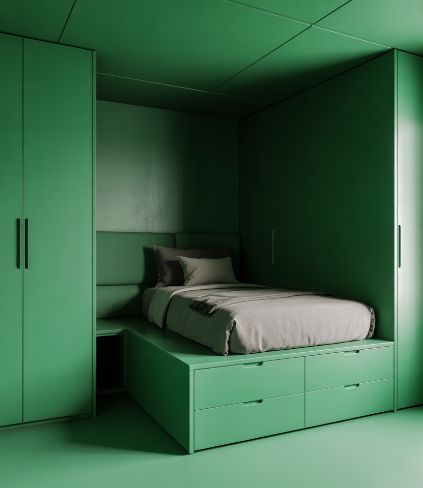 Here, we focus on how to install a cheap and cozy built-in bed platform and color-drench the walls, ceiling, and furniture in one strong hue to create a put-together look. Designers, like those interviewed by Natasha Bazika, are heralding “color drenching” as a key 2026 trend—painting an entire room one hue rather than an accent wall. Martha Stewart + 1 In a compact bedroom, one could do a DIY platform bed installation with storage drawers underneath, match that with a wall tone, and go for either a cozy single bed or queen, depending on your space. The look would work great for couples, teens, or even one room of two kids sharing; a strong color anchors everything, and the small space feels intentional rather than cramped.