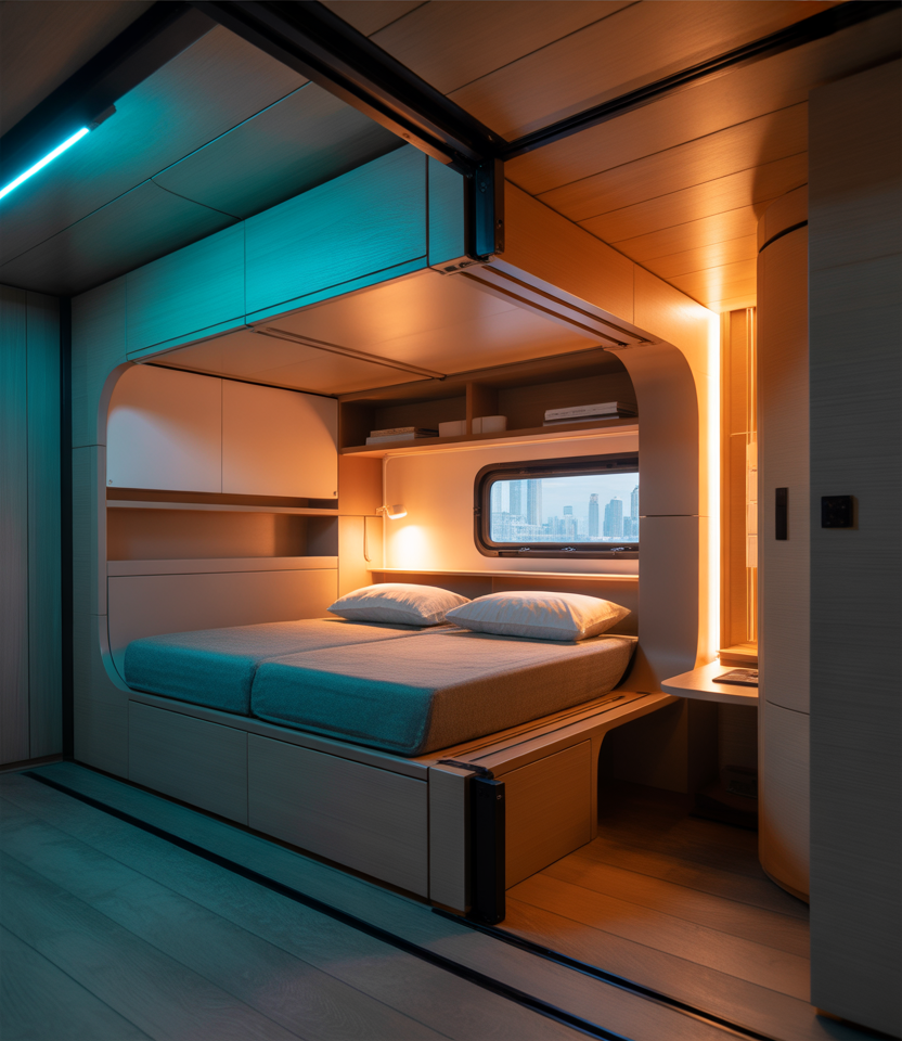 21. Cozy capsule room for digital nomads