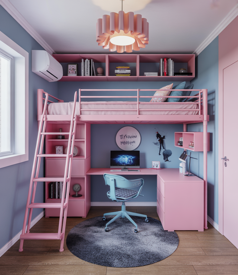 If you’re decorating for teens, this idea blends the current “baddie” aesthetic with practical organizing and DIY touches to suit a small bedroom. Think floating shelves loaded with decorative items, a loft bed with a desk underneath, bold paint or wallpaper accents, and clever under-bed drawers. Use a color palette of pastel pinks and cool blues—in line with “women color schemes color palettes blue”—to create mood, and invest in multi-functional furniture—a bench with hidden storage and an ottoman that doubles as seating and a container. Creating an organized, visually rich space supports both study and rest. The aesthetic flair combined with space-saving organization makes this idea both functional and stylish.
