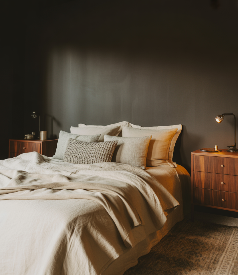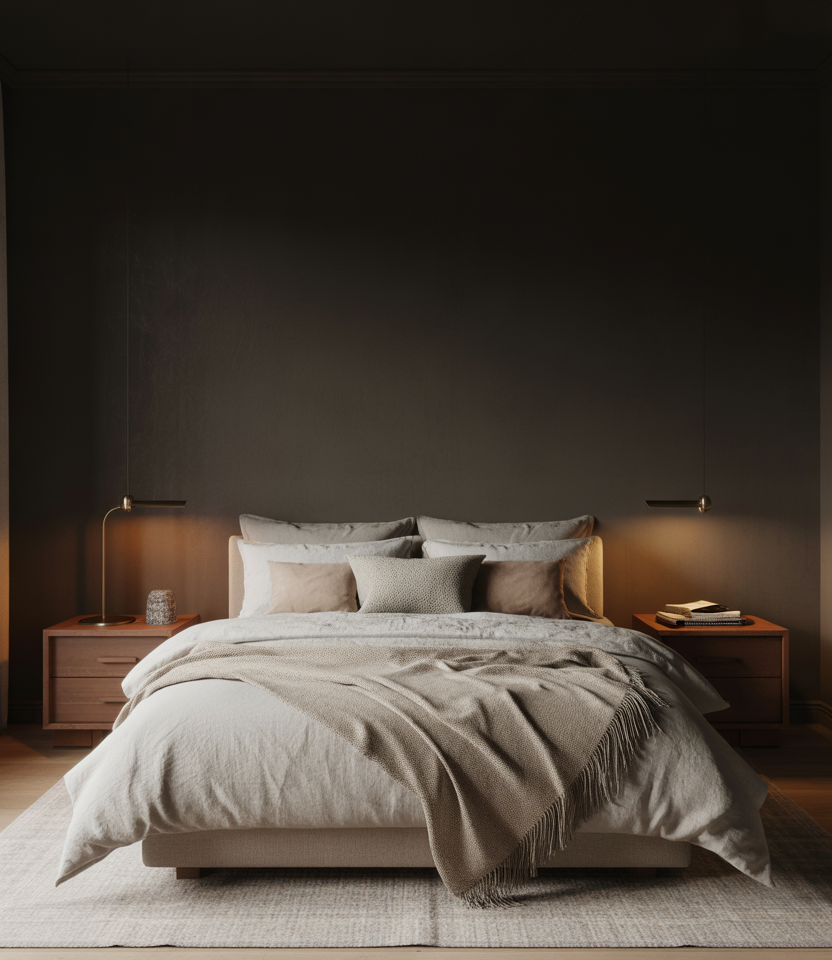 Soft dark tones in bedrooms are here to stay. In 2026, a well-styled master bedroom features dark hues with warm undertones for a moody and very relaxing feel. It is the atmosphere of overintensity that is key.