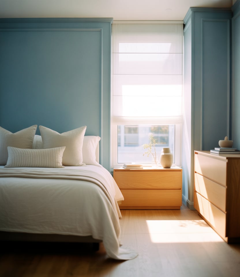 Bedrooms with a compact layout can benefit a lot from lighter shades of blue. For 2026, powdery blue is a wonderful choice to retain an optimistic feel, offering a spacious and airy ambience. Uncluttered and warm, these colors also provide a wonderful choice for lighting and other elements.