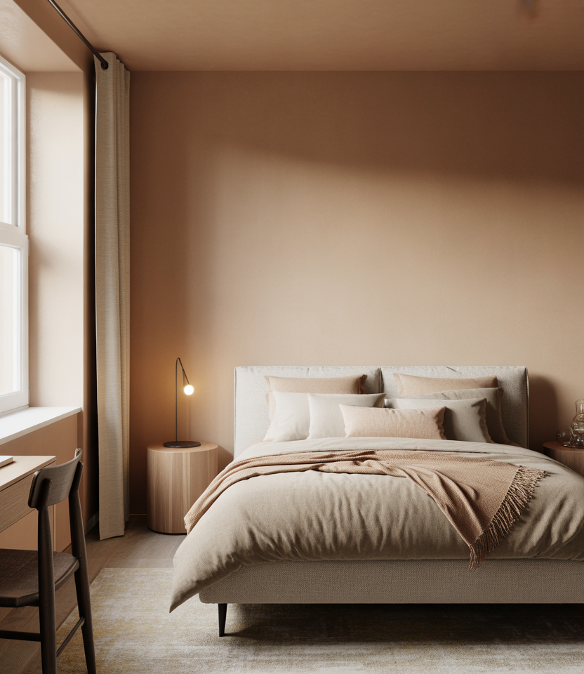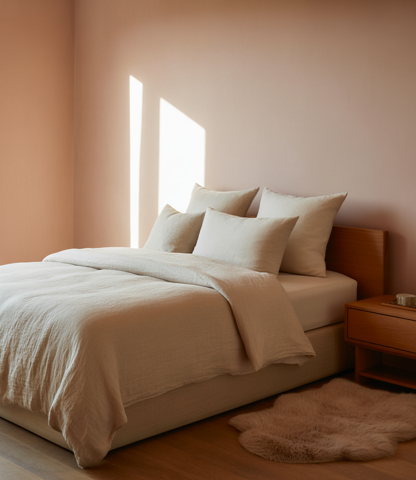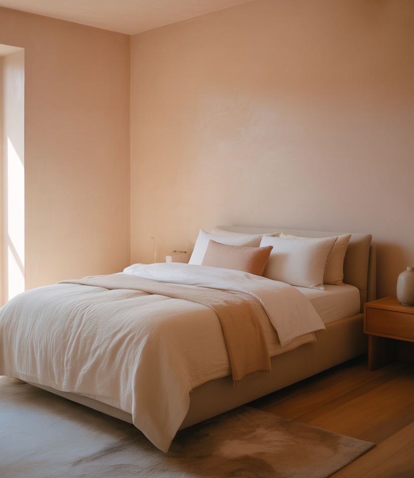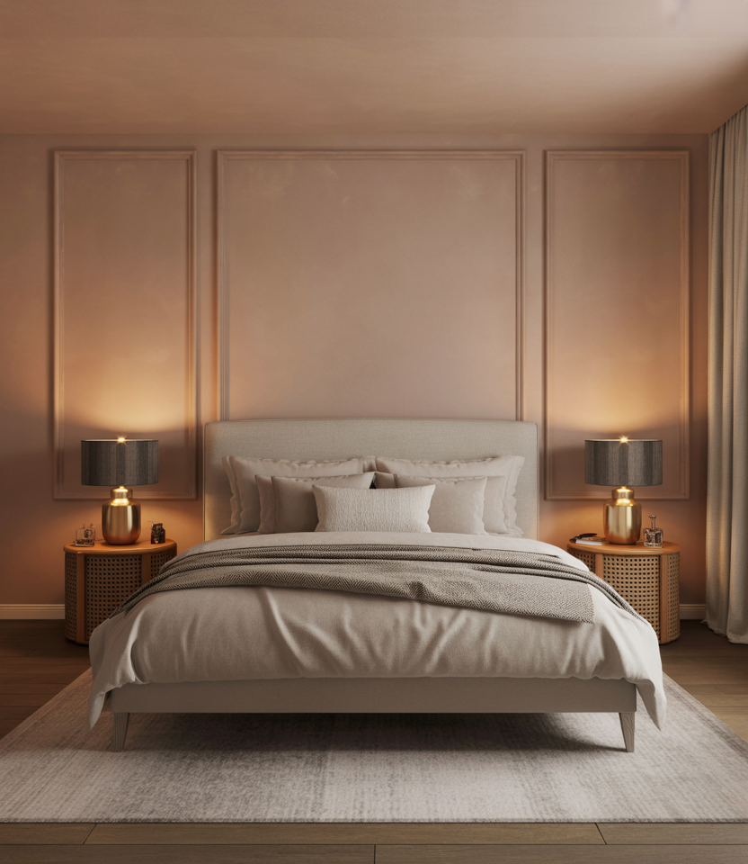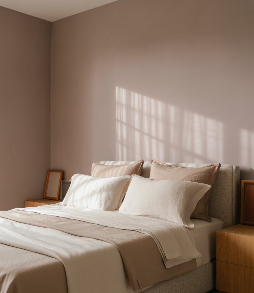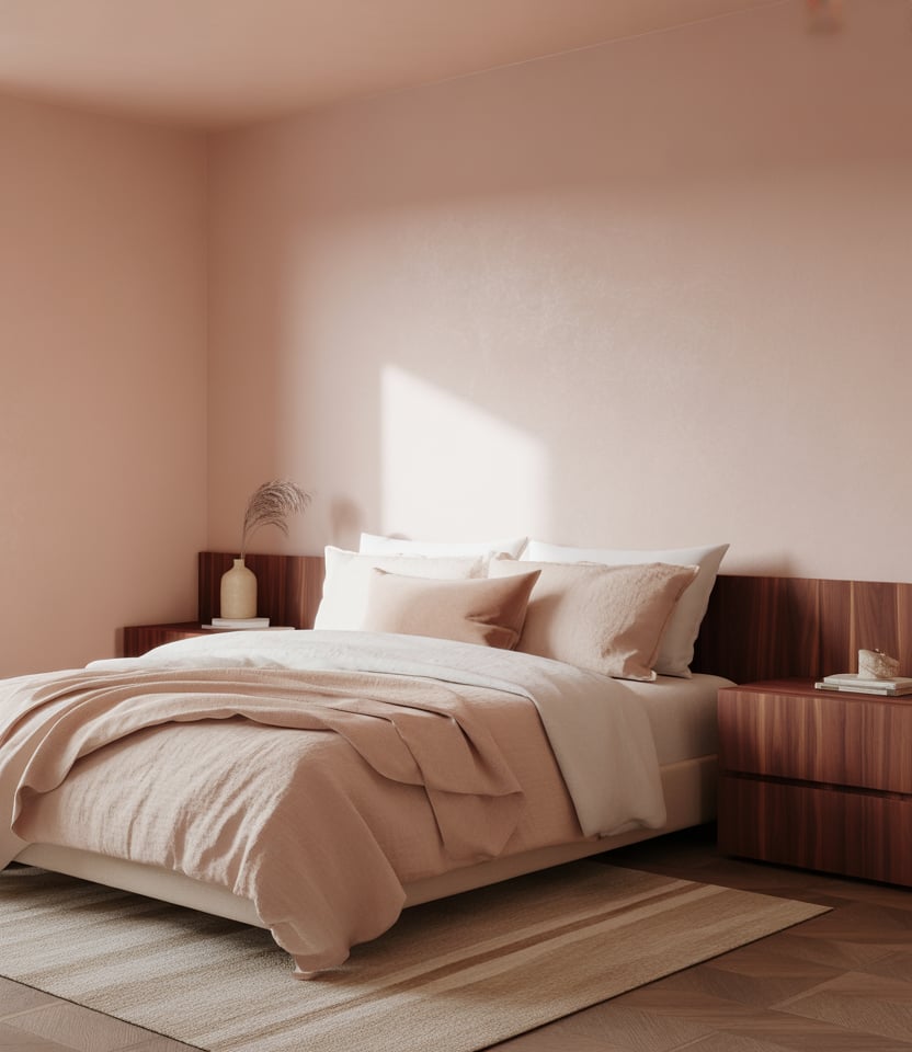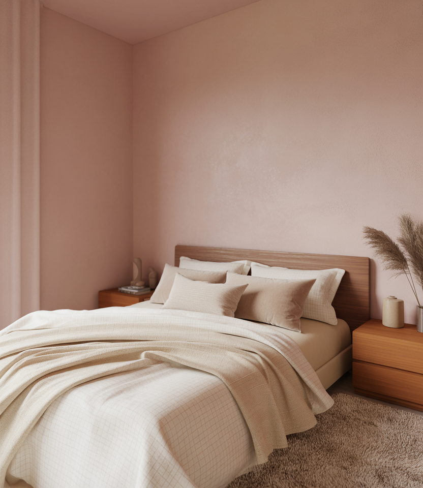 Blush tones are evolving into subtle neutrals rather than statement colors. These soft shades carry a whisper of pink while still functioning as a neutral palette. In 2026, they’re a go-to for bedrooms that want warmth without obvious color.