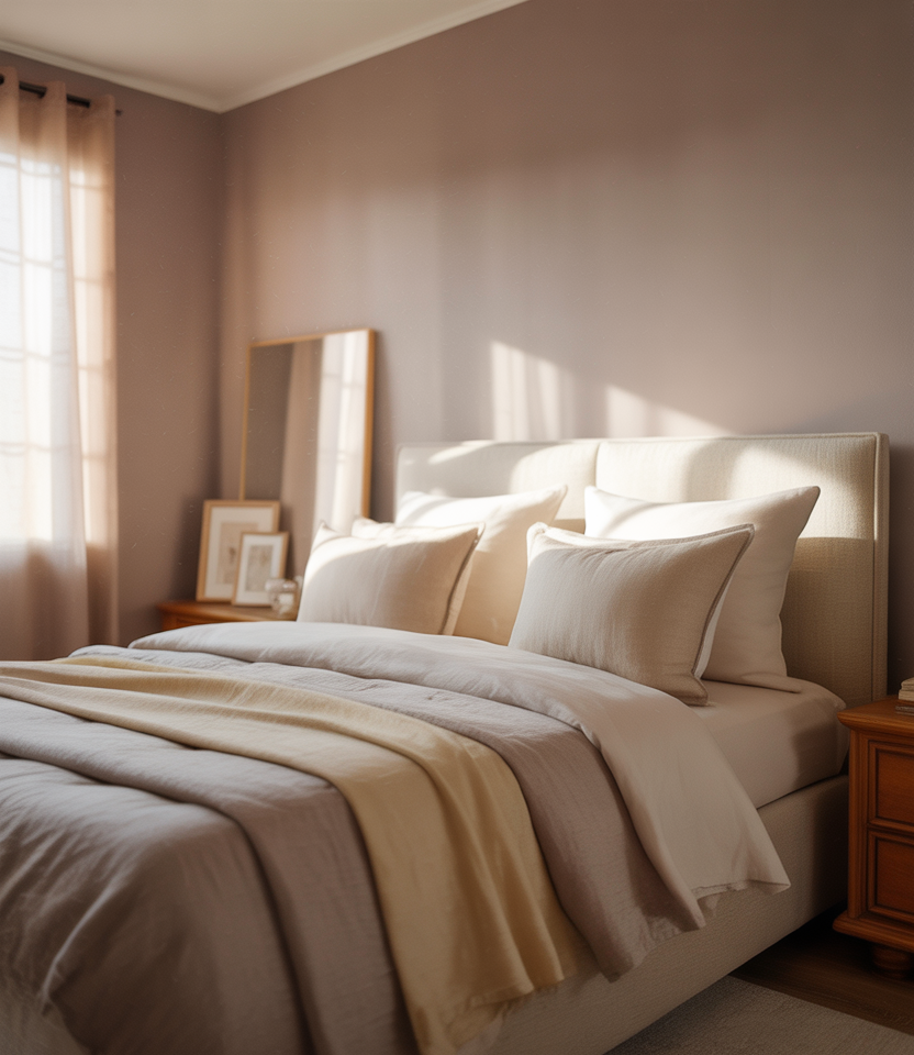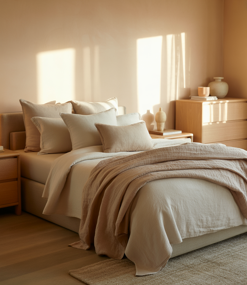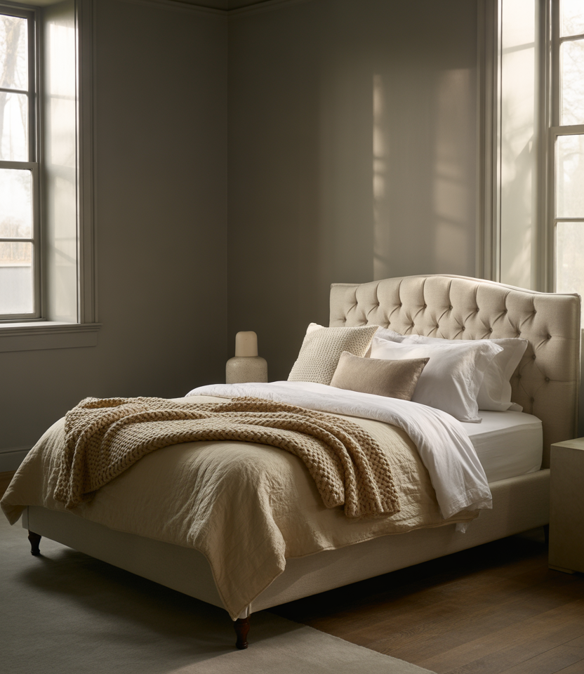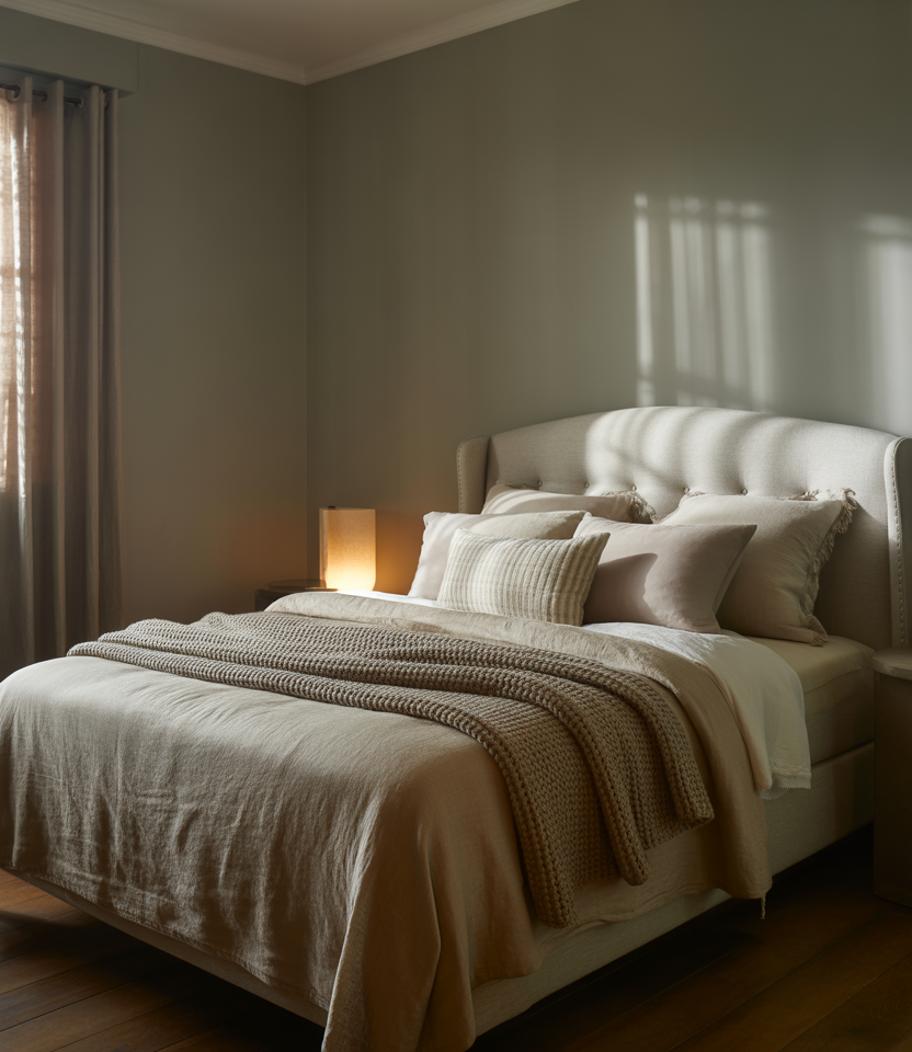 The final trend is less about color alone and more about feeling. Soft neutrals remain best sellers, but in 2026 they’re layered with texture for a deeply relaxing, aesthetic bedroom that feels personal rather than staged.