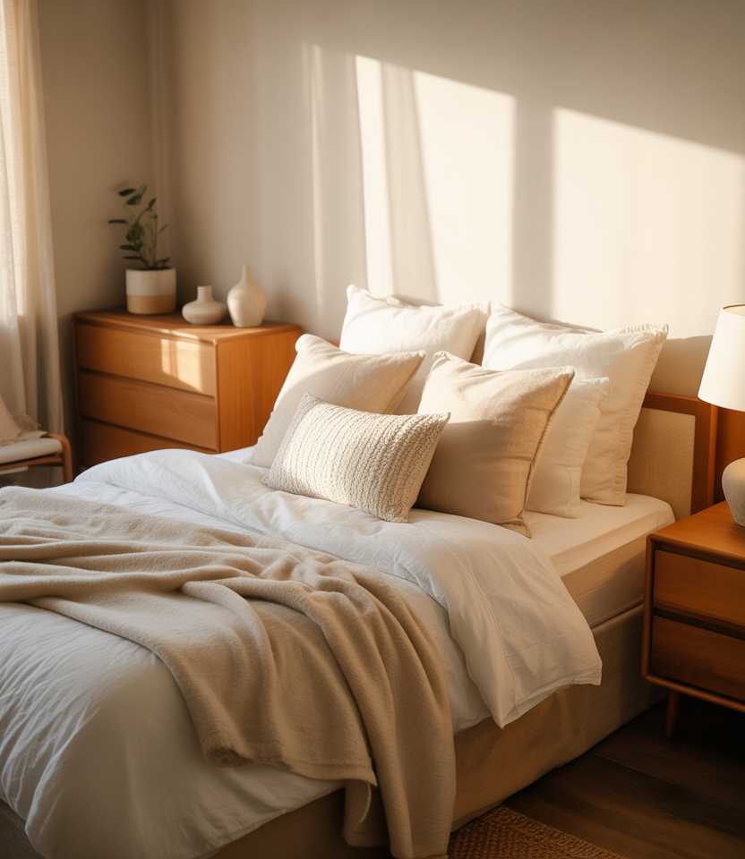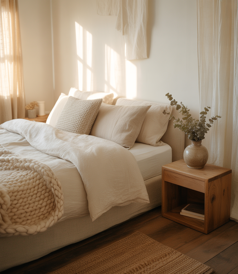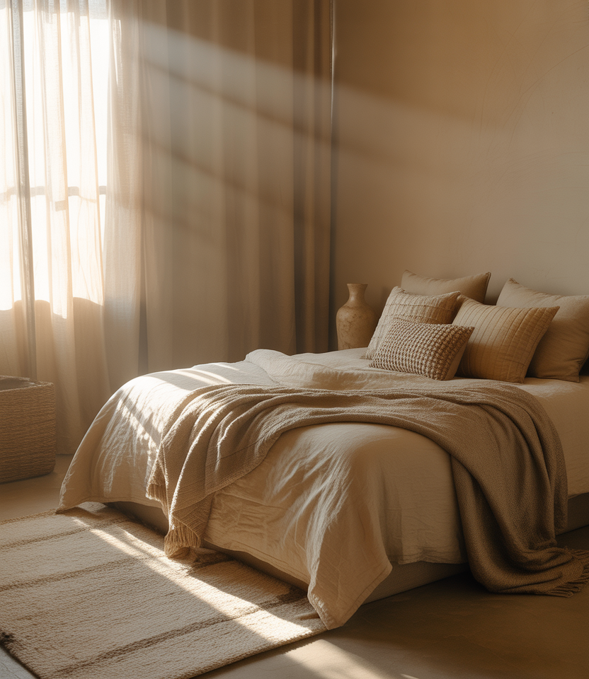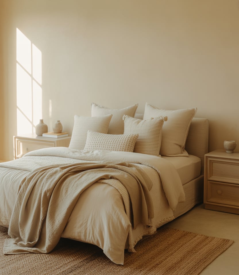 The final trend is less about color alone and more about feeling. Soft neutrals remain best sellers, but in 2026 they’re layered with texture for a deeply relaxing, aesthetic bedroom that feels personal rather than staged.