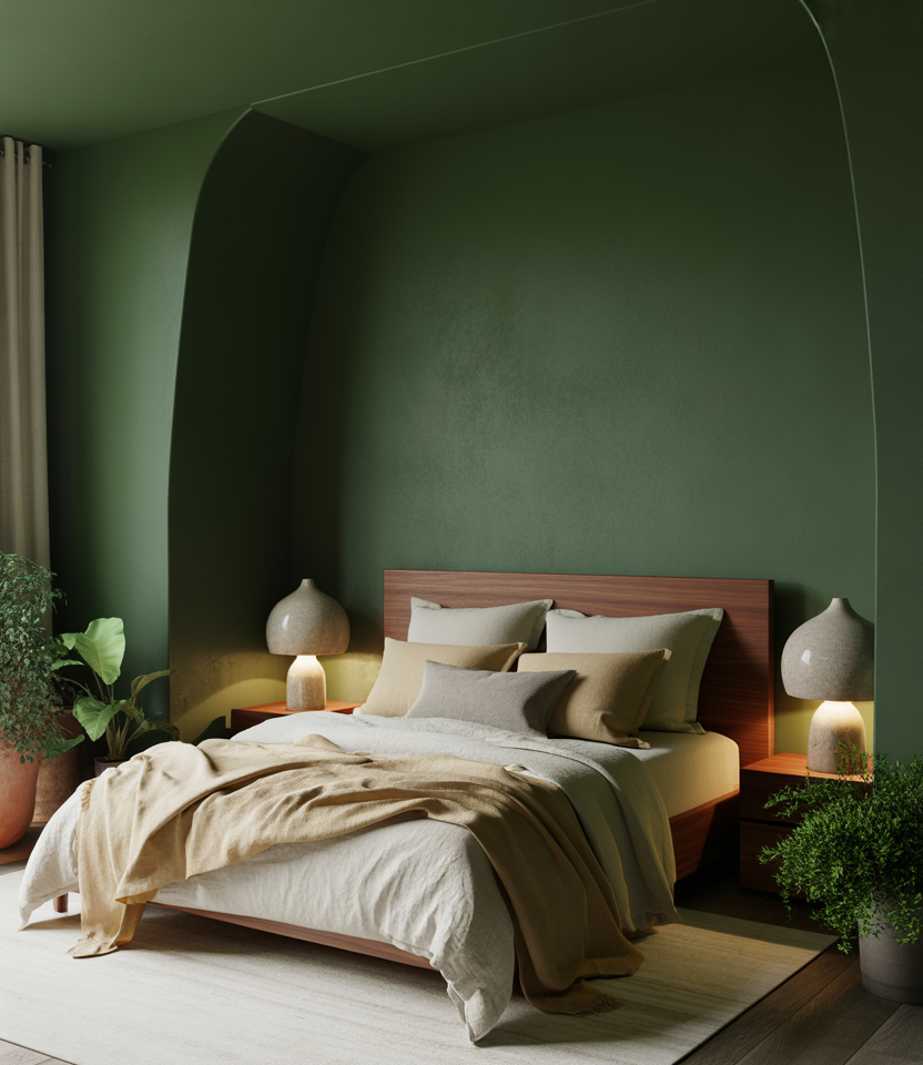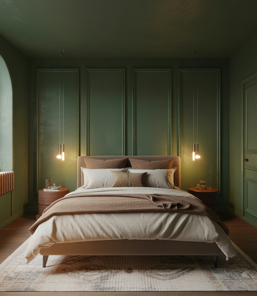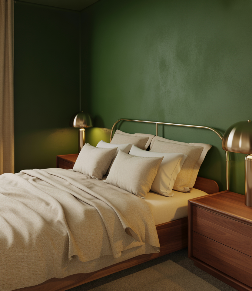 Forest green is becoming a defining dark green choice for bedrooms in 2026. Rich and enveloping, it brings a moody calm that still feels natural. This shade works especially well for those craving privacy and depth without sacrificing elegance.