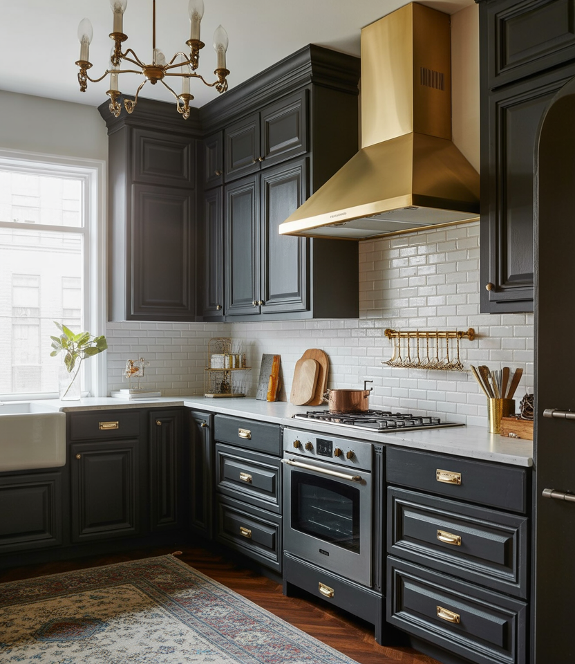 8. Black Matte Finishes Paired with Brass or Antique Bronze Hardware