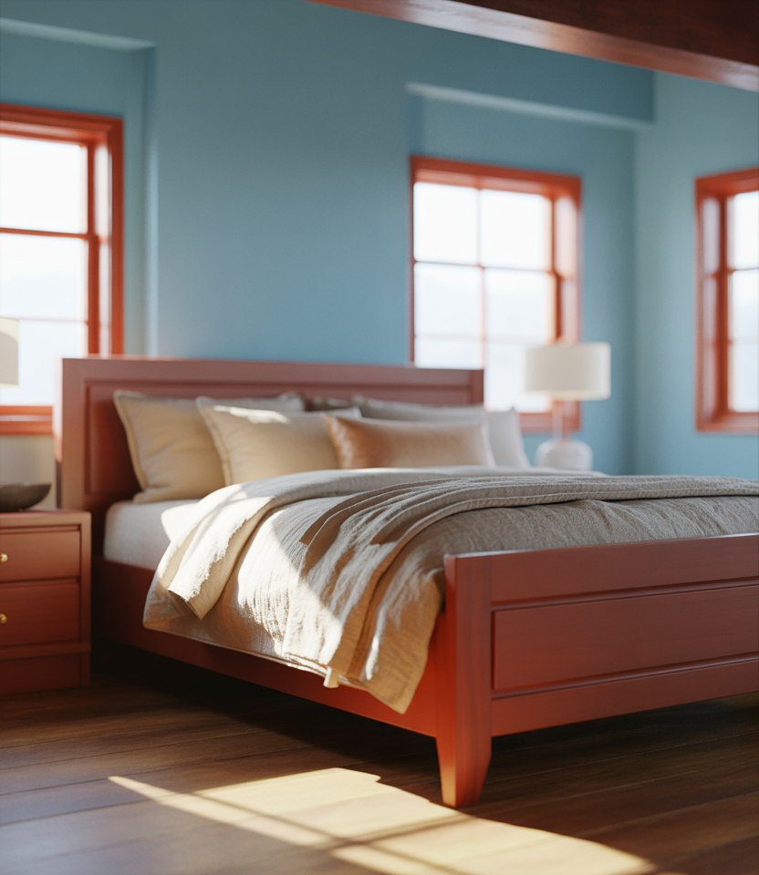 Light blue bedrooms feel fresh, familiar, and easy to live with. When combined with light blue walls and white trim, the look leans airy and timeless rather than trendy. This palette suits homes with limited natural light, bouncing brightness around the room while still offering more personality than plain white walls.