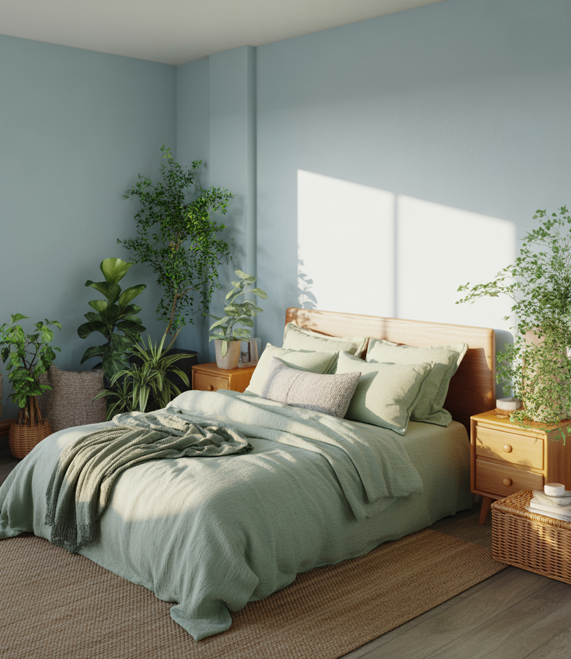 Blue and green together evoke calm landscapes, especially when using green and accents against softer blue walls. Hints of teal through pillows or artwork add depth without overpowering the space. This combination feels organic, relaxed, and grounded.