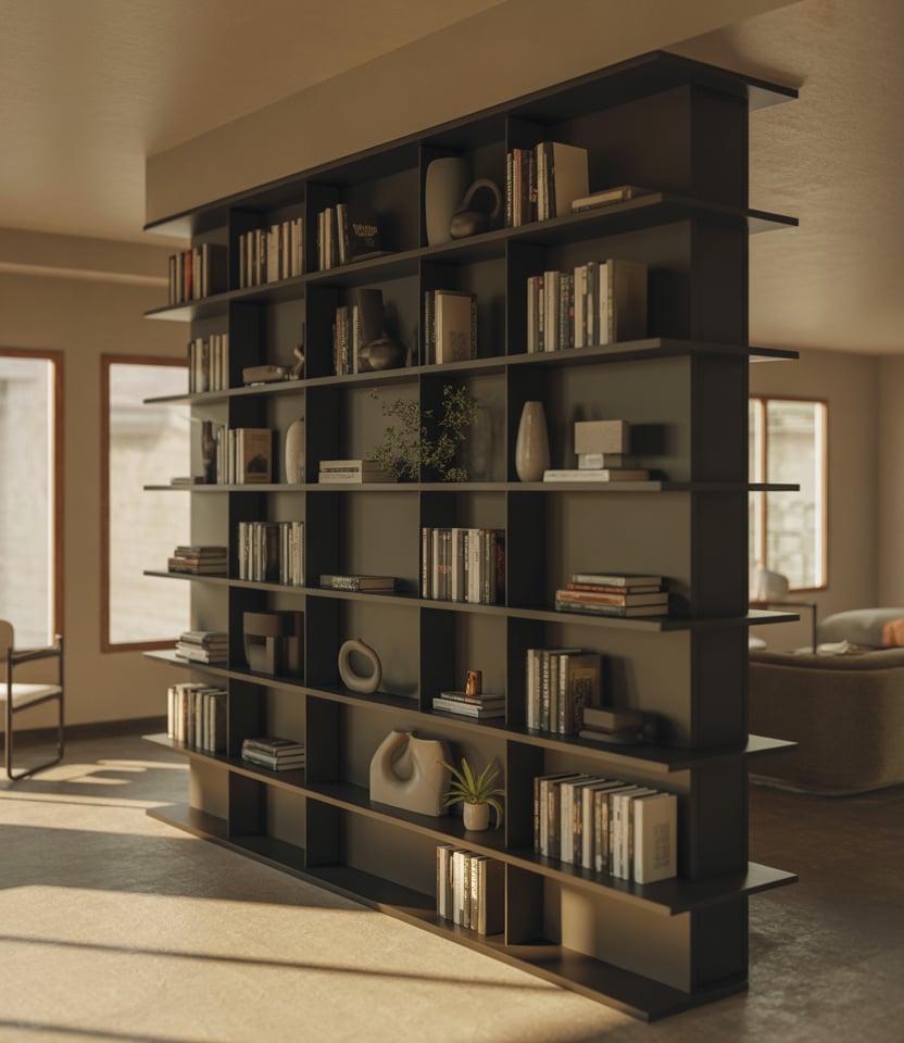 Dark shelving continues to dominate 2026, especially in black finishes that create instant depth. A tall bookcase painted the same shade as the wall feels immersive rather than heavy, especially when styled with lighter objects. This approach works beautifully in dens, dining rooms, and bedrooms craving a more intimate atmosphere.