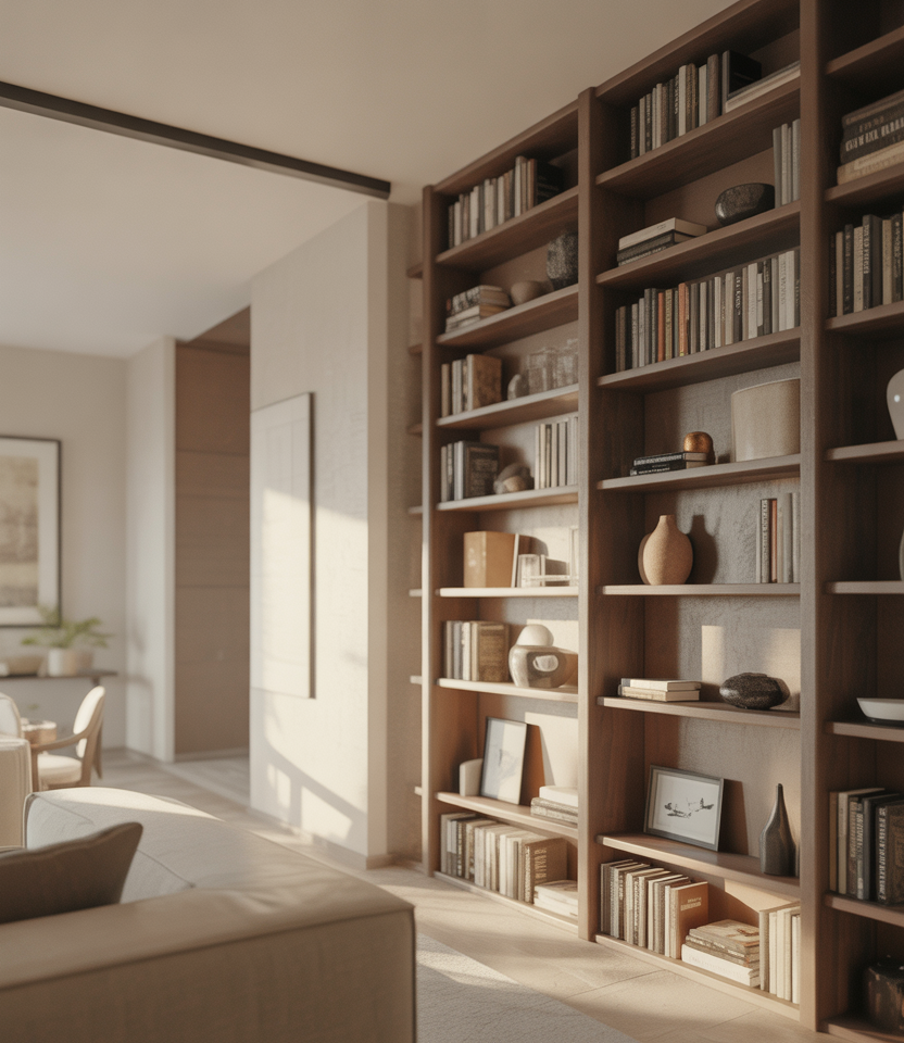Tall and narrow bookshelves are quietly trending in 2026 for adding drama without a footprint. They highlight vertical space, especially in rooms with high ceilings or awkward corners. Styled minimally with select books and objects, they feel sculptural rather than crowded.