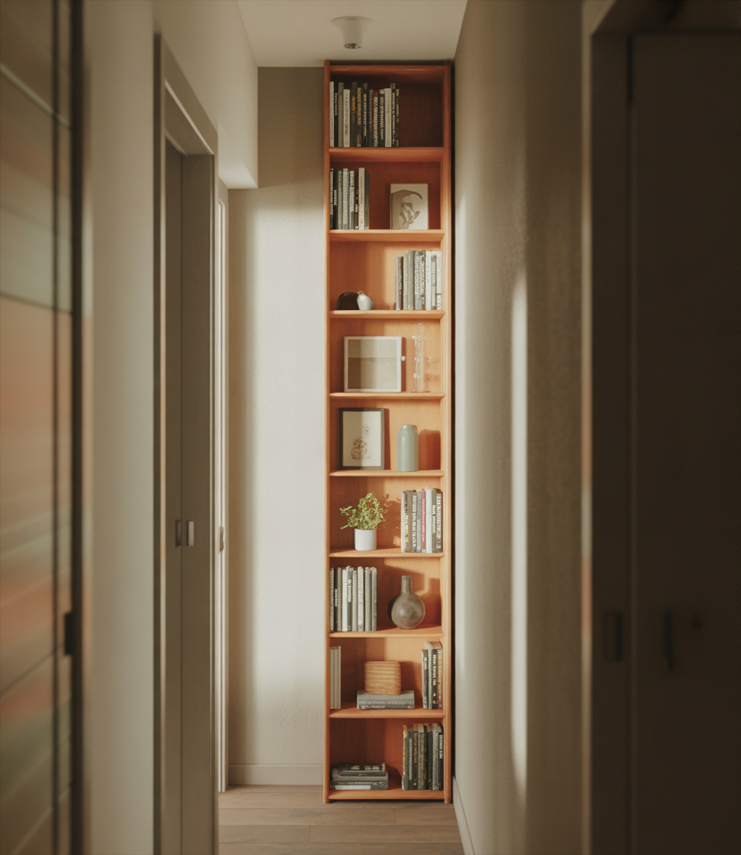 Narrow bookshelves are finding new life in 2026, especially in overlooked zones like hallways or between windows. Styled with a mix of aesthetic objects and a tight edit of books, these slim profiles add interest without crowding circulation paths. They’re subtle but surprisingly impactful.