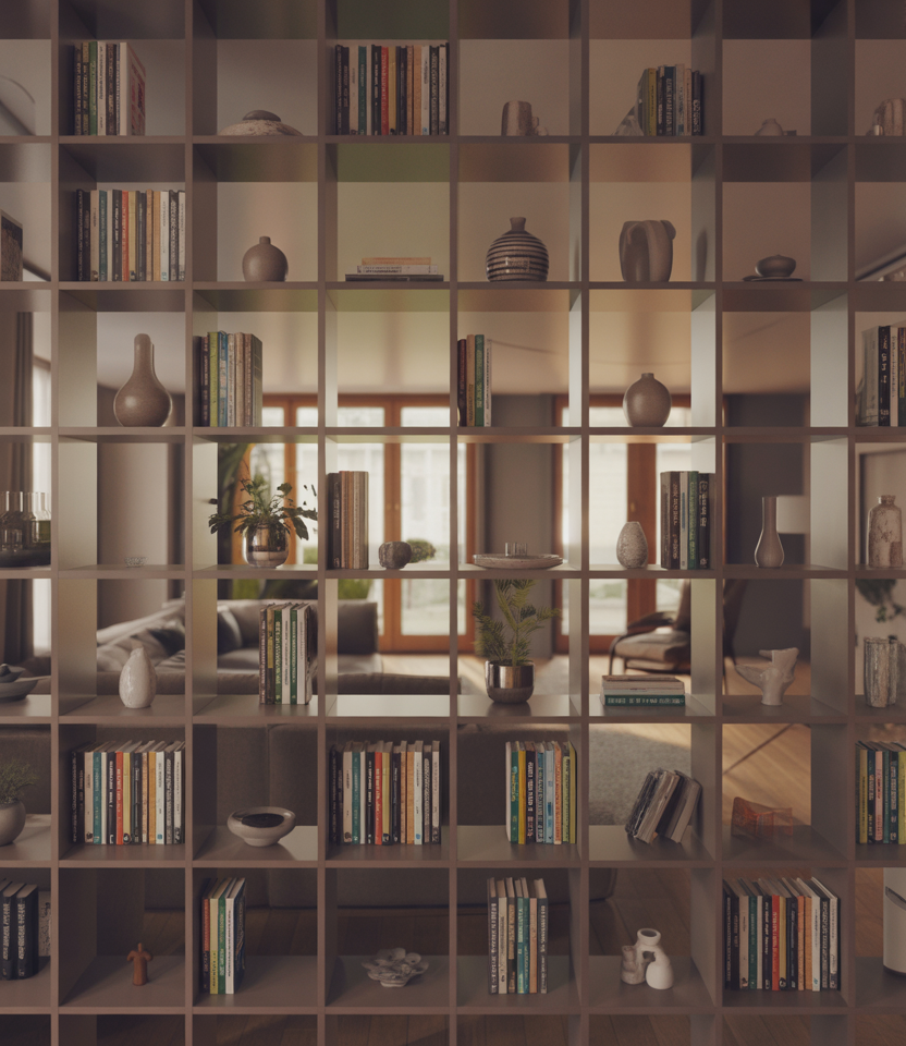 Cube shelving is increasingly used as a spatial tool in 2026, not just for storage. Open-backed systems like Kallax divide rooms while maintaining light flow. Styled with a mix of aesthetic objects and books, they define zones in studios and open-plan homes.
