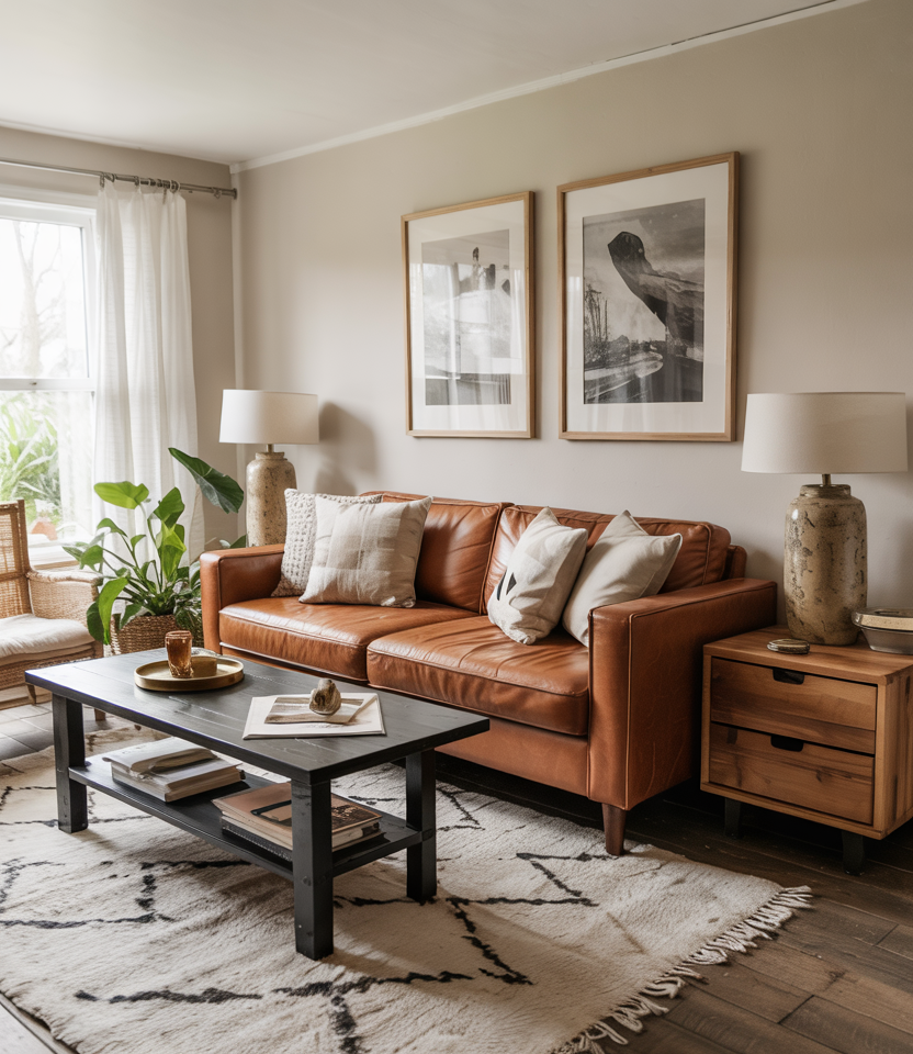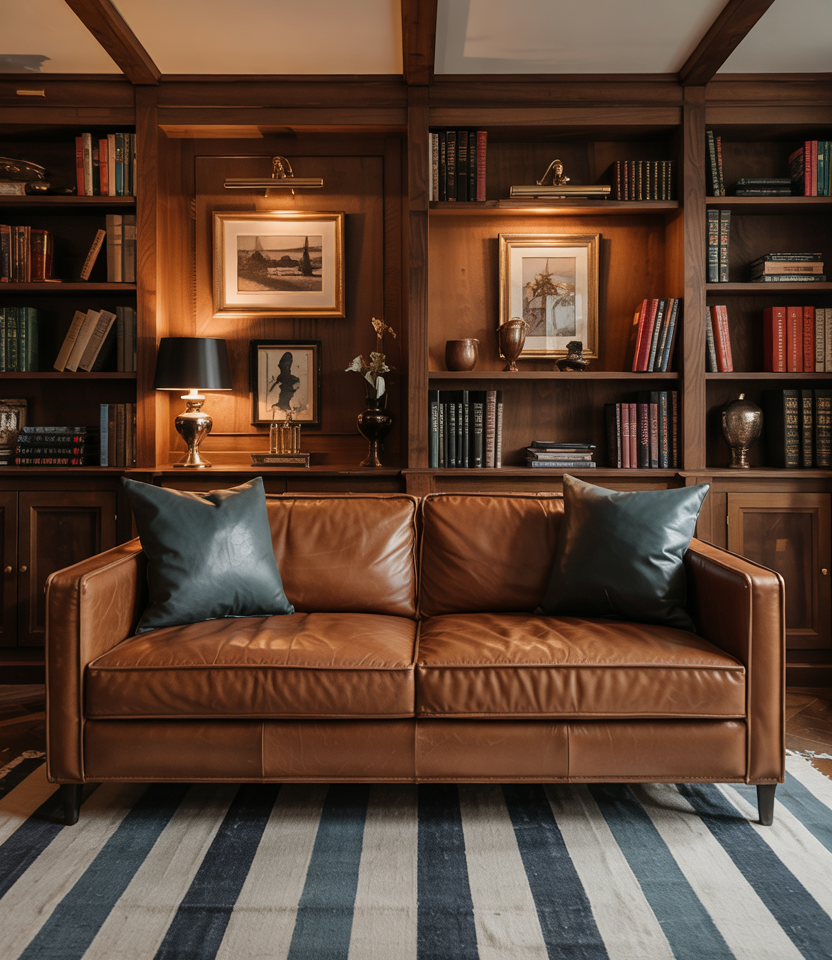Leather is brown’s best friend-patina tells your story. Anchor the room with a camel or chocolate sofa, add canvas chairs for balance, and a patterned wool rug. Keep walls neutral and layer decor ideas like books and pottery. Good furniture handles kids, pets, and pizza nights. A reader swore her leather sofa looked better after a toddler year; that’s the point.