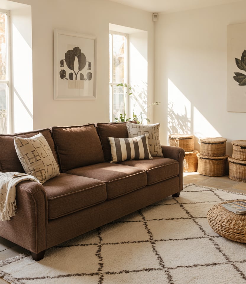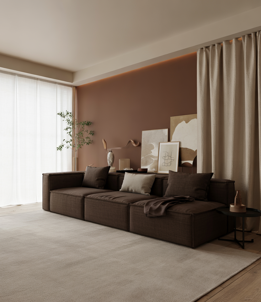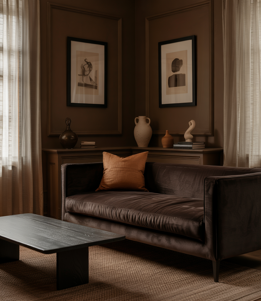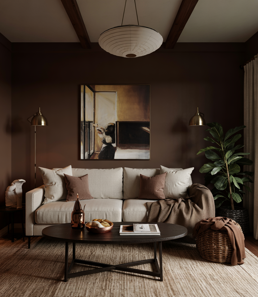All tempered, brown is calm in its colors, full of life for clean lines and layered decor. Make sure surfaces stay uncluttered with ridge-textured rugs, choosing low-slung furniture to stretch sightlines. Think linen drapes and matte paint on an accent wall for a cool, airy feel. The dark cocoa works well with White and oak, not sterile but sleek. Pro Tip: float that sofa a few inches from the wall and provide 30 inches of walking space-walking through the room suddenly becomes a whole new experience.