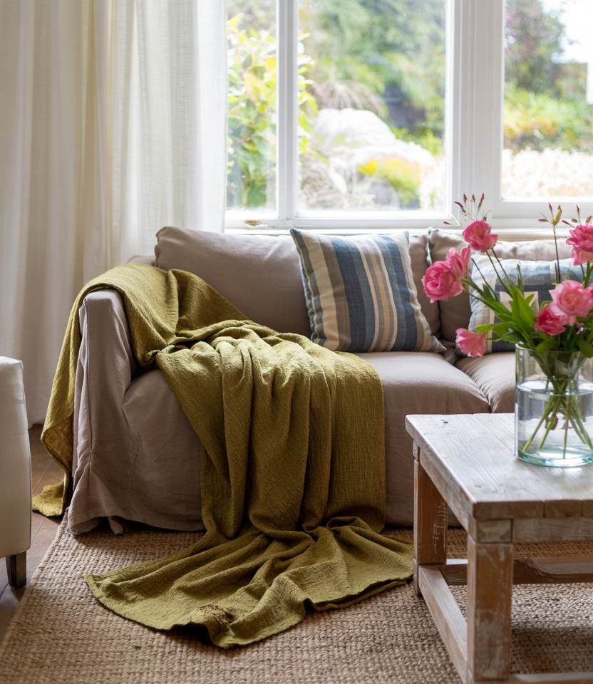 Let brown be the constant while accents rotate-olive throws in fall, Pink peonies in spring, Green and leafy stems in summer, Blue and stripes for July. Keep core furniture, paint, and rug steady; update decor ideas in a single bin. It’s budget-smart and keeps the aesthetic feeling alive.