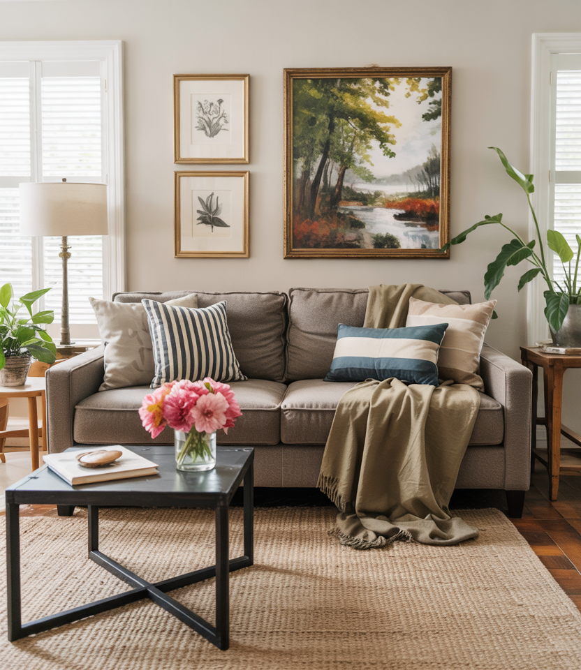 The Gray and brown (yes, Grey and too) pairing feels tailored-think espresso wood with graphite walls and smoked glass. Choose tight-weave rugs, steel details, and slim furniture legs to keep footprints light. Use warm paint undertones so it doesn’t go chilly. These decor ideas suit urban spaces where concrete views need counter-warmth. My trick: a walnut media console against greige reads custom, even if it’s big-box.