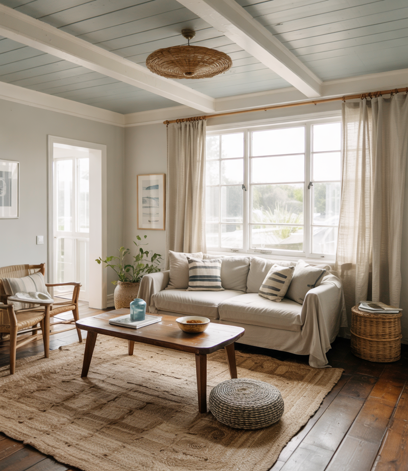When rooms run dark, introduce Light blue linen and honey-brown wood to freshen up without repainting everything. Sky-tinted paint on the ceiling lifts the eye-a trick I learned staging rentals. Keep walls warm and let furniture legs show to lighten the visual weight. A braided rug and beach-glass decor nod coastal without kitsch. These decorating ideas tame heavy fireplaces and bulky sectionals with airiness.