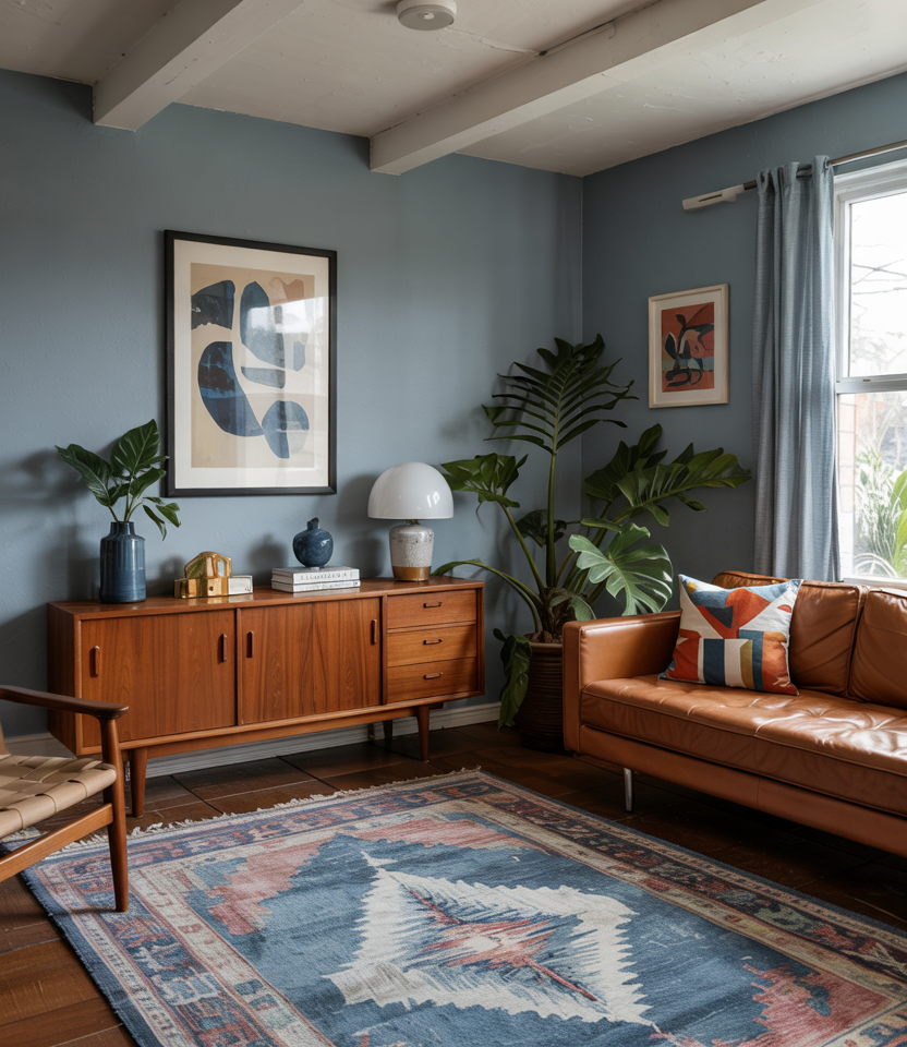 A Blue and brown combo channels mid-century confidence. Teak furniture, a denim-hued rug, and painted accent walls in muted indigo are all in the mix. Keep silhouettes clean: peg legs, slim arms, low backs. Introduce playful decor ideas-geometrics, bubble glass-so it doesn’t feel like a museum. Personal note: I once switched out throw pillows for a chambray version, and the whole room suddenly felt “pressed and crisp”-like a good shirt.