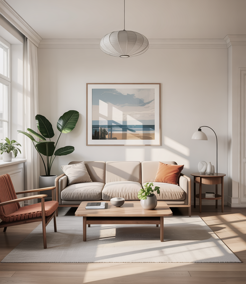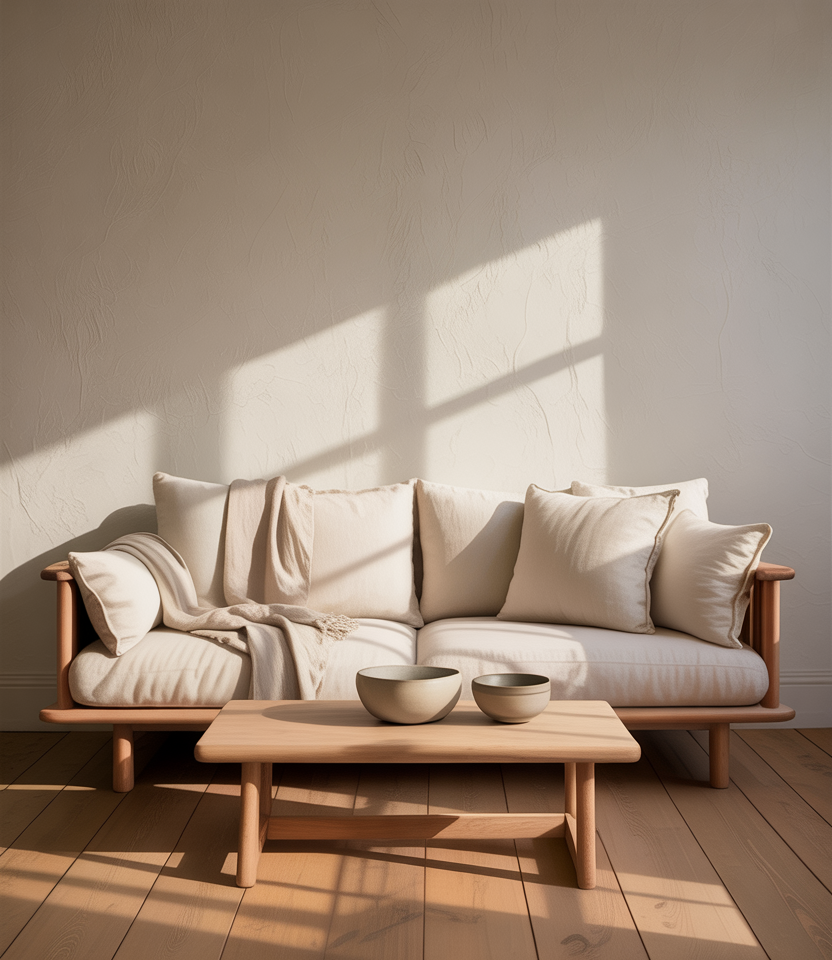 Japandi-inspired living rooms blend Japandi, interior, and neutral sensibilities into a quietly refined contemporary look. Soft wood tones, low seating, and organic textures create balance between Japanese simplicity and Scandinavian warmth. Clean lines dominate, but nothing feels cold. The space invites slowing down, making it ideal for stress-free everyday living.