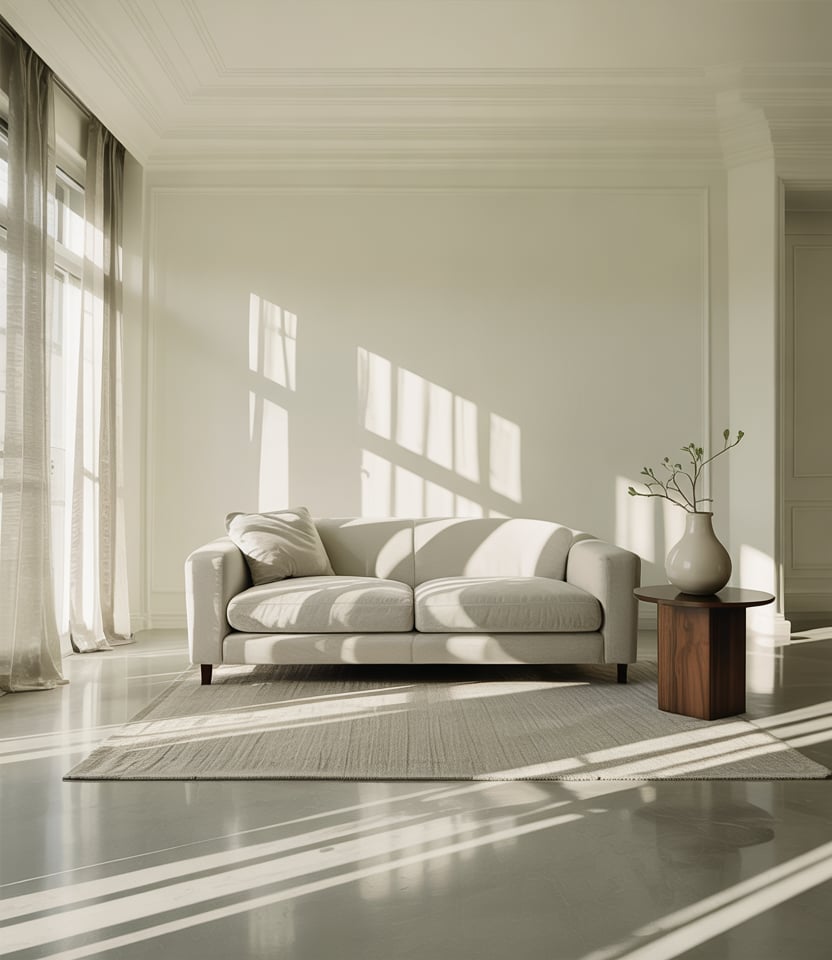 A soft neutral foundation defines this contemporary living room approach, where neutral, white, and minimal tones create a calm visual rhythm. Walls, sofas, and area rugs stay within a warm off-white spectrum, allowing texture to do the heavy lifting. Linen upholstery, subtle plaster finishes, and pale wood floors deliver quiet depth. The room feels intentional yet relaxed, making it ideal for homeowners who want timeless appeal without drifting into sterile minimalism.
