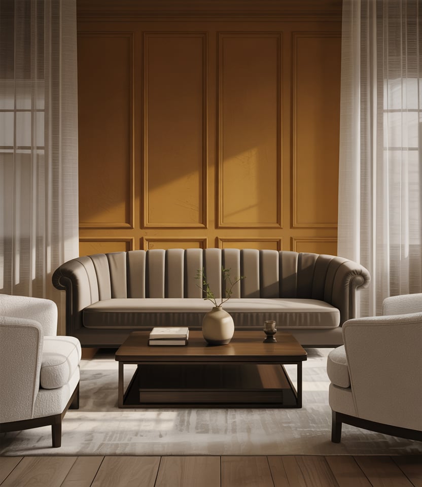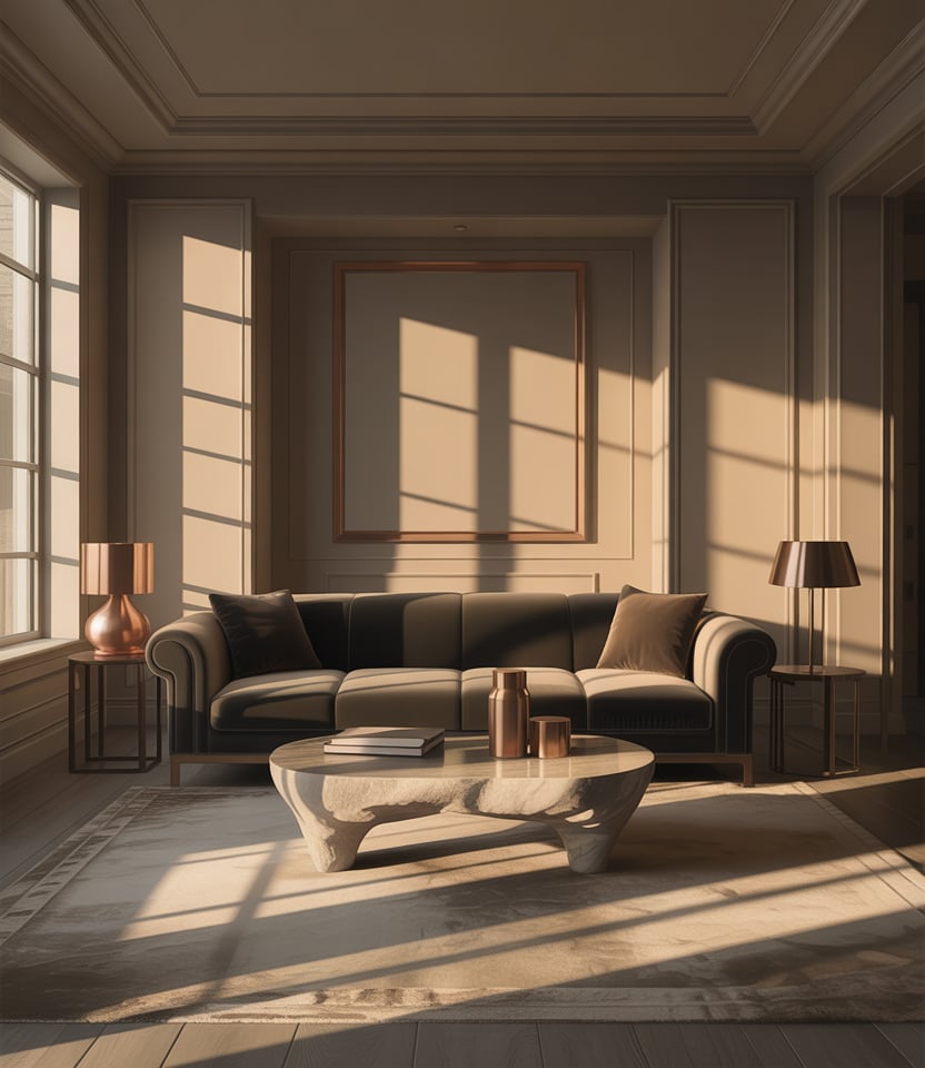 Luxury in contemporary living rooms today feels restrained rather than flashy. Using luxury and elegant design cues, this idea focuses on refined materials like stone, velvet, and brushed metal. Clean silhouettes keep the room modern, while rich textures introduce quiet drama that feels elevated but approachable.