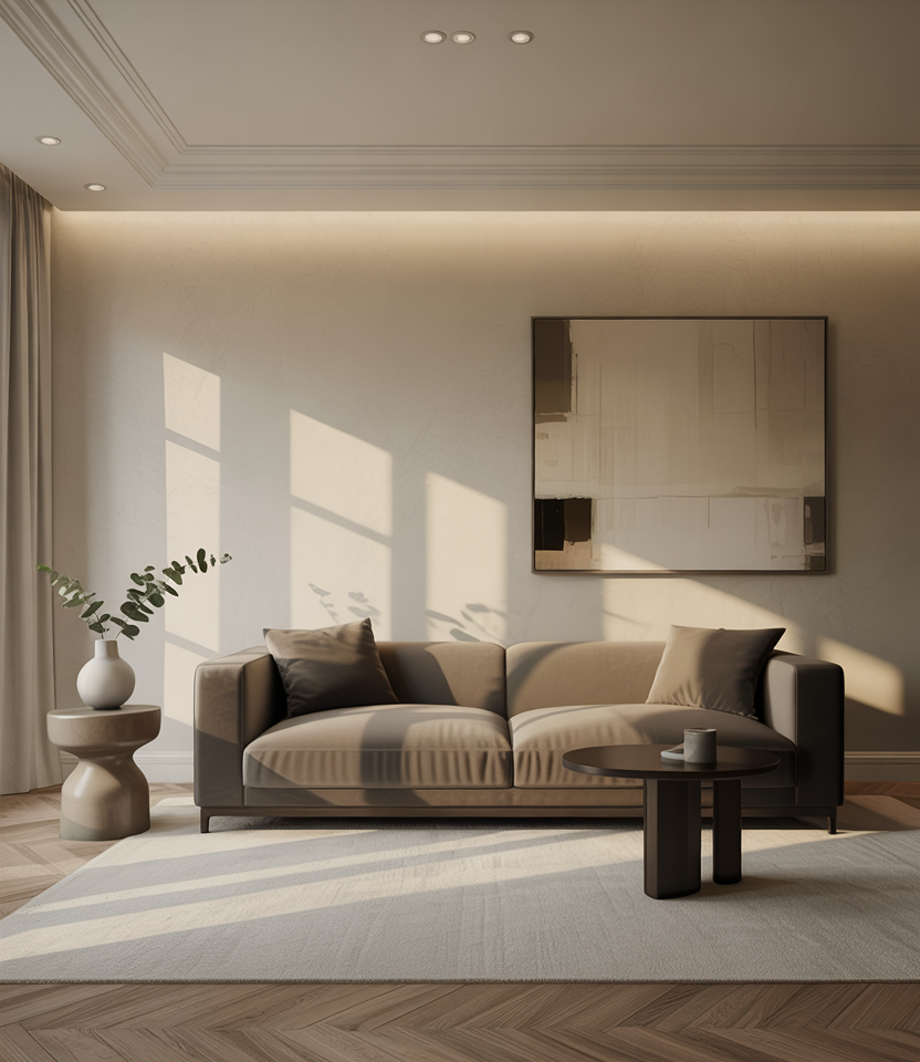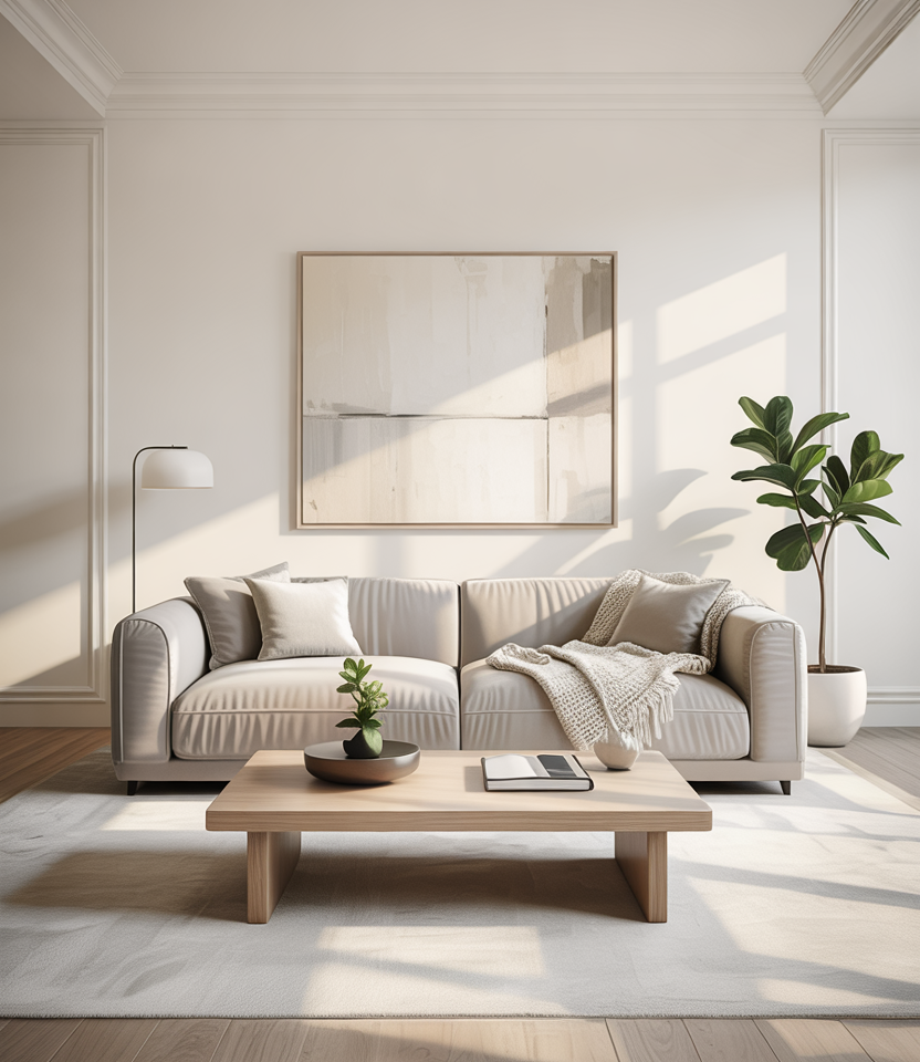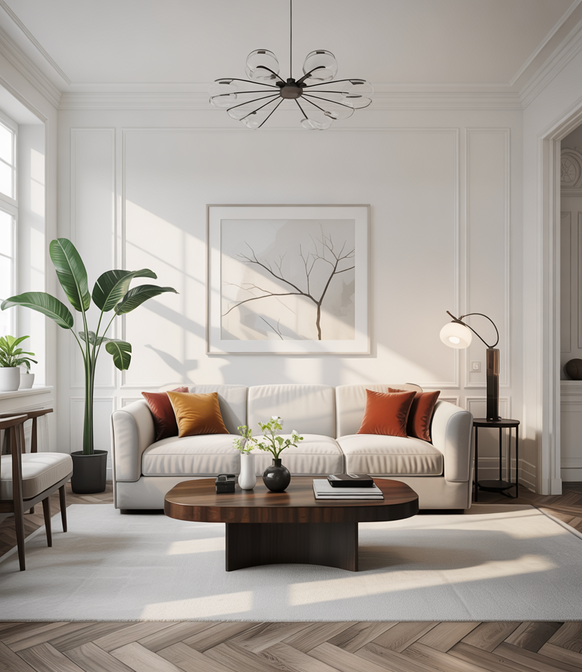 This contemporary style is tailored for apartment dwellers who value clarity and restraint. A modern minimalist layout prioritizes open circulation, slim furniture profiles, and edited décor. Neutral walls support functional pieces like modular sofas and concealed storage, keeping visual noise low. The result is a living room that feels spacious even when square footage is limited.