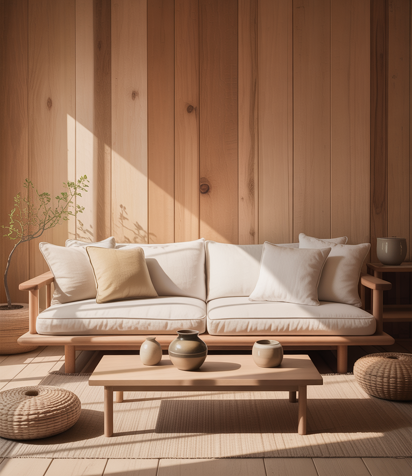Japandi-inspired living rooms blend Japandi, interior, and neutral sensibilities into a quietly refined contemporary look. Soft wood tones, low seating, and organic textures create balance between Japanese simplicity and Scandinavian warmth. Clean lines dominate, but nothing feels cold. The space invites slowing down, making it ideal for stress-free everyday living.