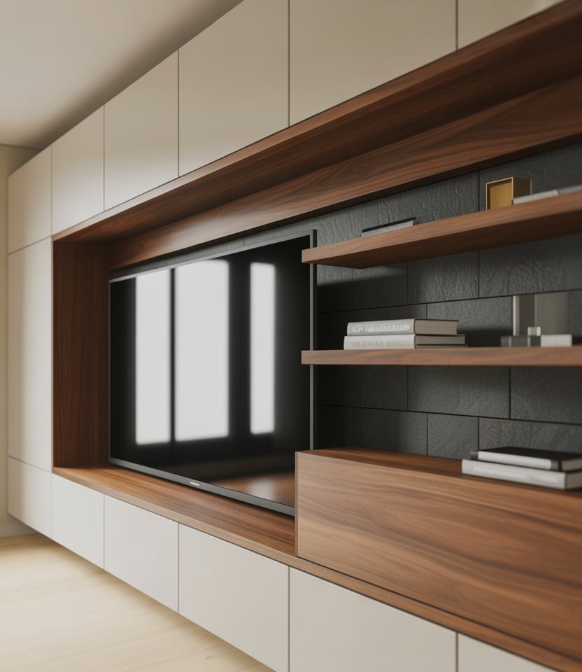 The modern TV unit has become a defining architectural feature in contemporary living rooms. Clean cabinetry, flush panels, and integrated storage keep technology visually quiet. Paired with design ideas rooted in symmetry and proportion, the TV blends seamlessly into the room rather than dominating it. Materials like wood veneer or stone elevate the overall look.