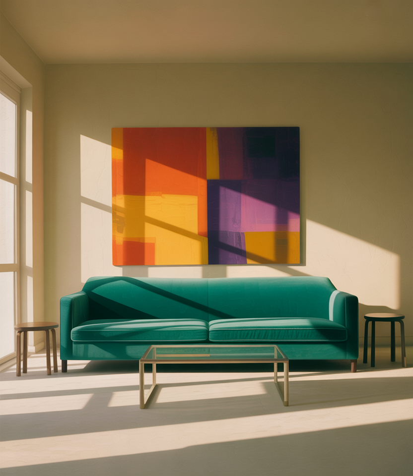 Color-forward contemporary living rooms challenge the idea that modern must be muted. Using colorful accents within a structured design’s luxury framework keeps the space vibrant yet controlled. Statement art, bold upholstery, or saturated rugs act as focal points against clean architectural backdrops.