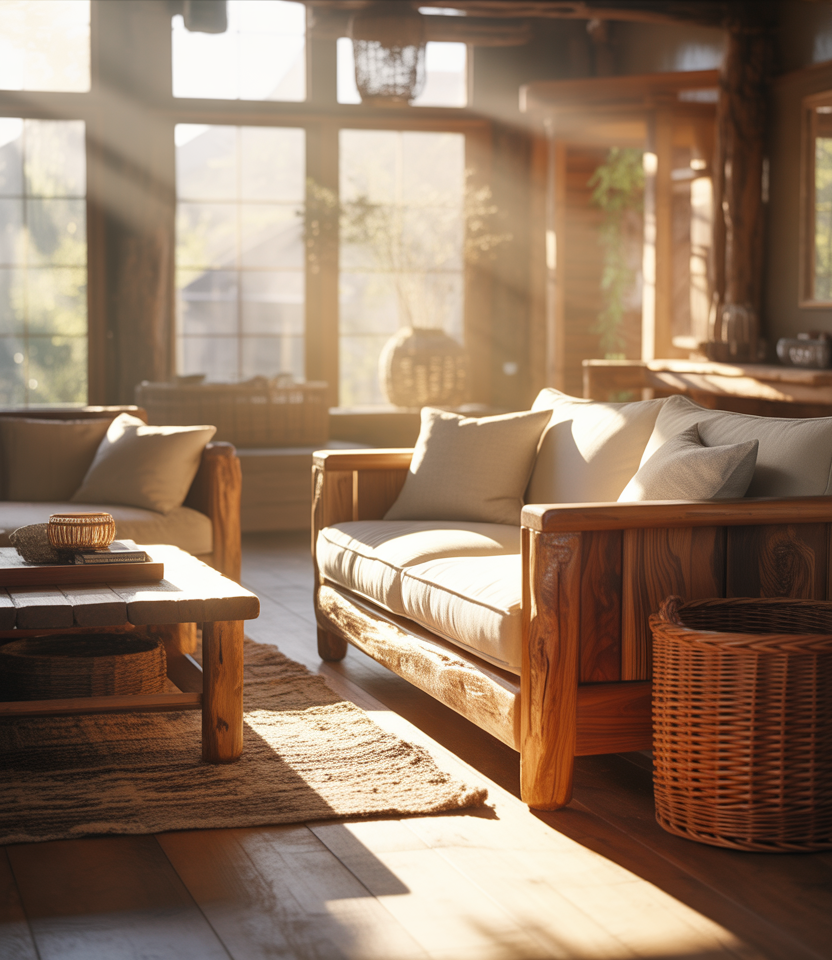Warm wood finishes are reclaiming cozy living rooms in 2026. From oak coffee tables to walnut shelving, warm interior design and earthy materials bring visual warmth that synthetic finishes can’t replicate.