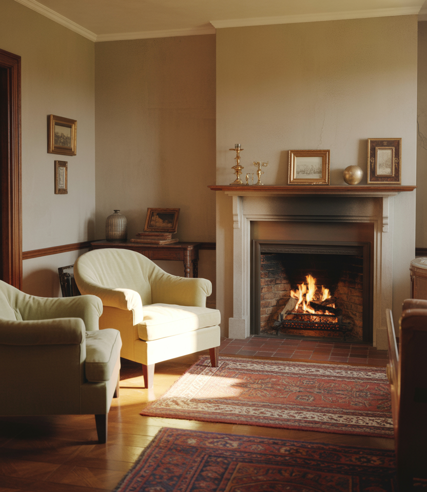 Even in contemporary apartments, fireplaces are once again becoming emotional anchors. Adding a fireplace, whether electric or original, adds instant coziness. Paired with a fireplace, Traditional Warm-Color Palettes Living rooms feel comforting and rooted without the risk of looking dated. , living rooms feel rooted and comforting without looking dated.