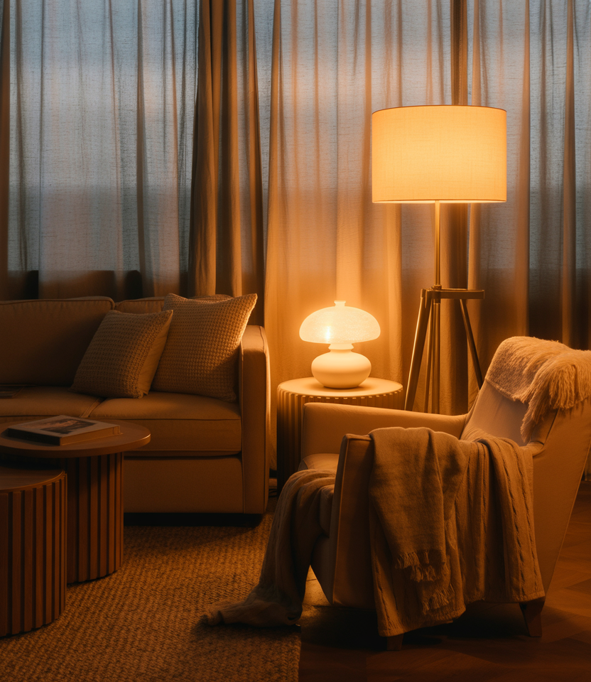 In 2026, lighting ideas take priority over decorative clutter. Cozy living rooms lean into moody ambiance created through dimmable lamps, shaded sconces, and warm pools of light rather than bold decor pieces.