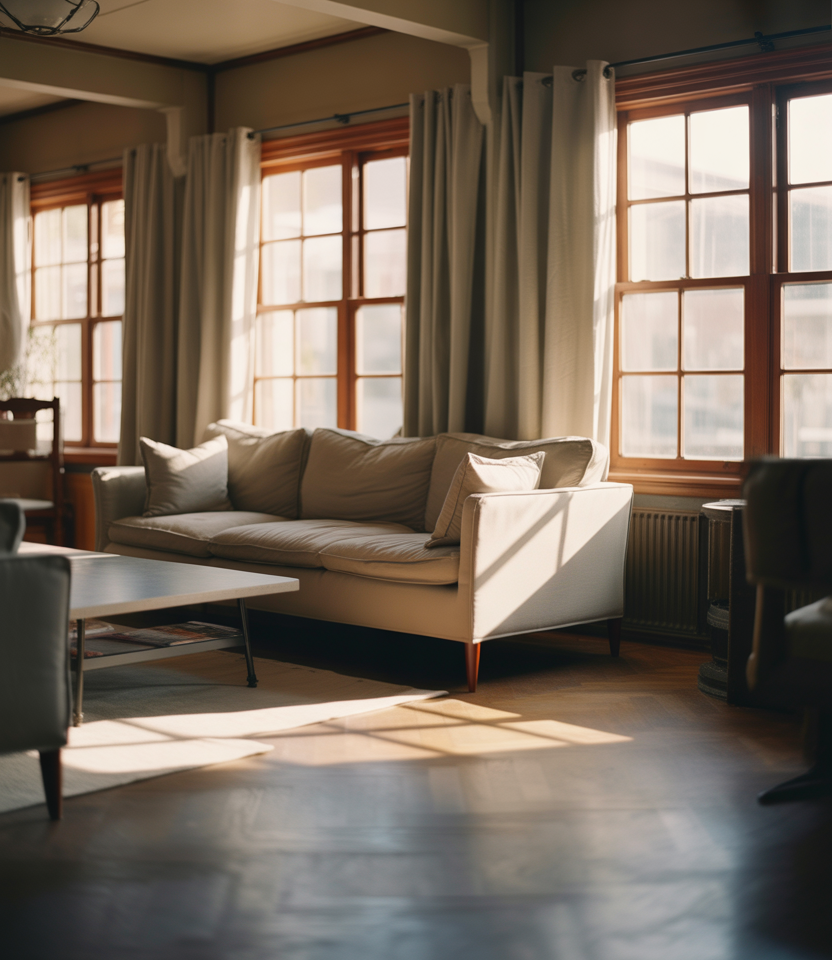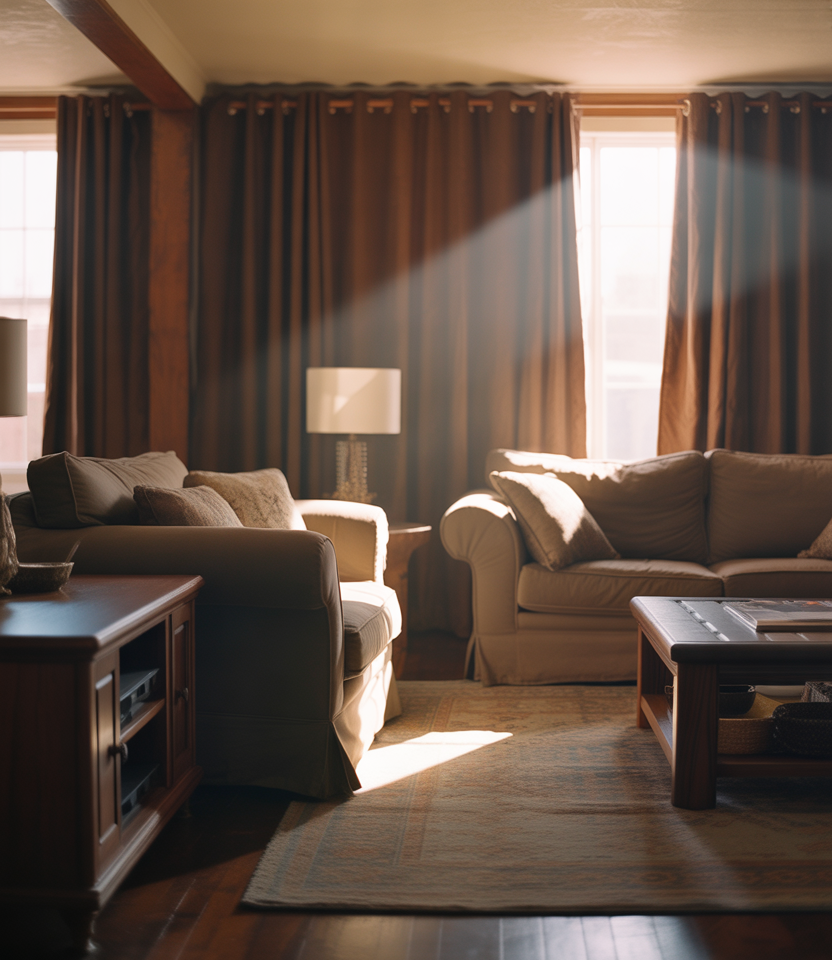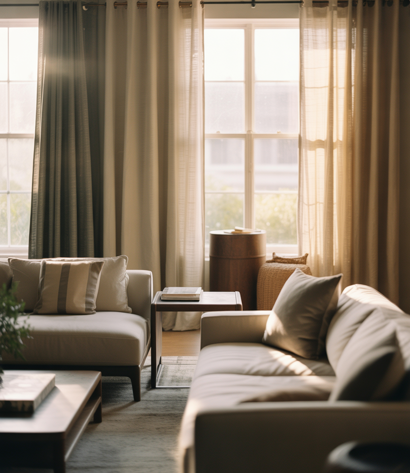 Roman shades offer a tailored alternative to living room curtains in 2026, ideal for homeowners who prefer structure over flow. In neutral tones like beige or soft grey, Roman styles sit close to the window, keeping sightlines clean. They’re especially effective in smaller living rooms where bulky fabric feels overwhelming.
