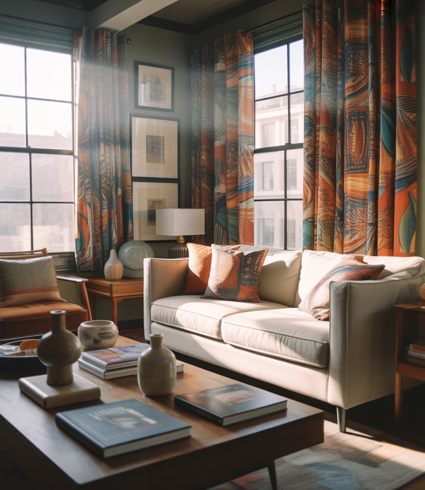2026 will see patterns return in confidence for living room curtains, especially for expressive home decor. Bold prints with colors will allow homeowners to be expressive while keeping the decor balanced and the room cohesive. When curtains are used, other design elements should remain neutral.