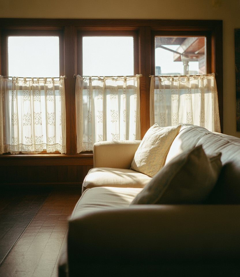 Lace brings gentle romance to living room curtains in 2026 without feeling outdated. Delicate lace in cream tones diffuses sunlight beautifully, creating privacy while maintaining brightness. This choice feels especially right in living rooms that face busy streets or neighboring homes.