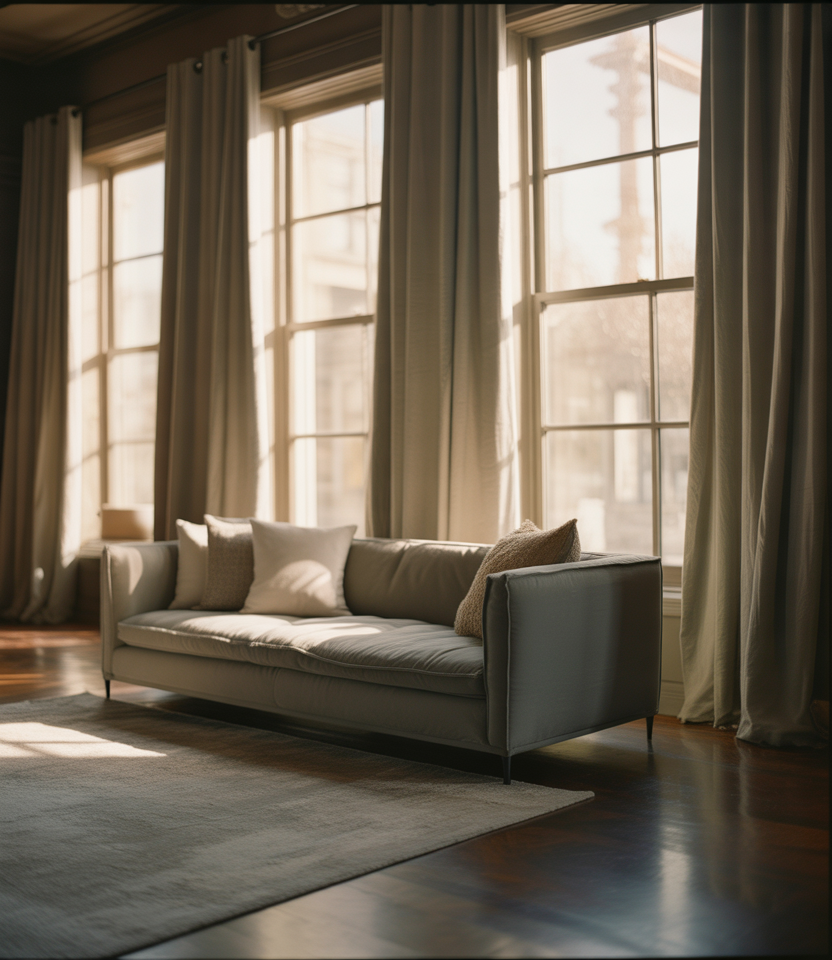 Compact city homes inspire smarter choices in living room curtains in 2026. Short Roman shades provide privacy while preserving window space, making them ideal for apartments and condos. Their tailored look suits modern interiors where floor-length curtains might feel excessive.