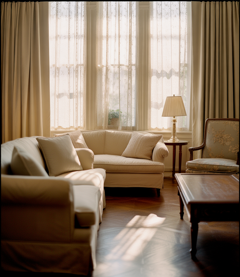 Lace brings gentle romance to living room curtains in 2026 without feeling outdated. Delicate lace in cream tones diffuses sunlight beautifully, creating privacy while maintaining brightness. This choice feels especially right in living rooms that face busy streets or neighboring homes.