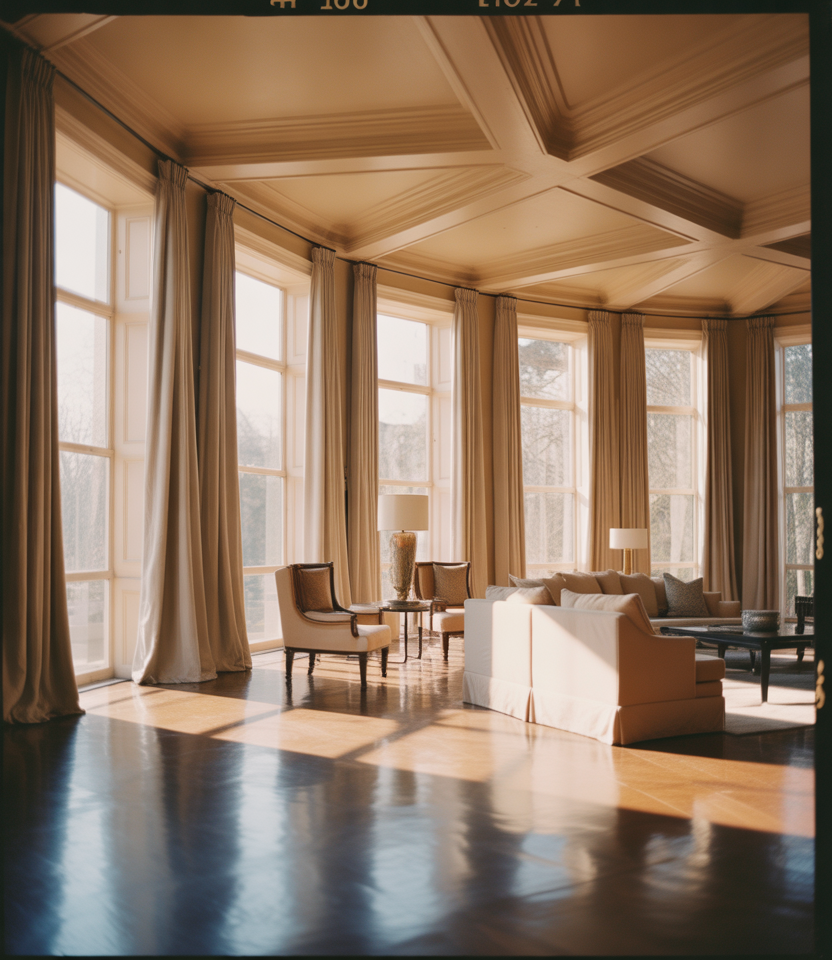 Tall windows call for equally confident treatments in curtains in living room 2026. Extra tall curtains emphasize scale, especially in rooms with high ceiling layouts. Hanging panels from ceiling height adds drama while visually anchoring large walls.