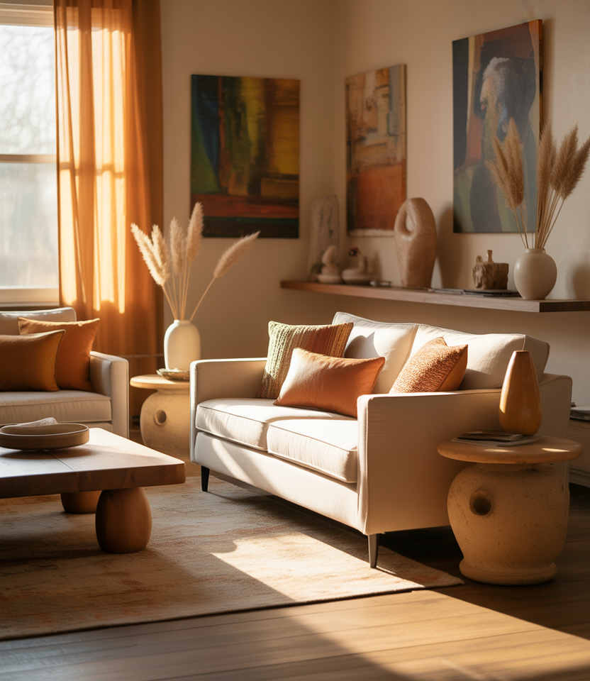 Orange will thoughtfully appear in the living room curtains in 2026 as an accent and not as a statement. When paired with neutral warm walls and creative muted orange tones, they will provide warmth and creativity. Used in long panels, they will not overwhelm daily living and will provide personality.