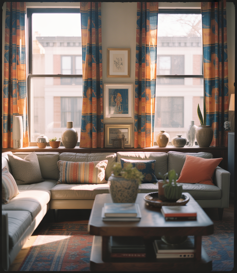 Not every living room needs to stay neutral in curtains living room 2026. Carefully chosen Colorful curtains in yellow or orange can energize a space when the rest of the room remains simple. These tones work best as accents, adding joy without overwhelming everyday living.