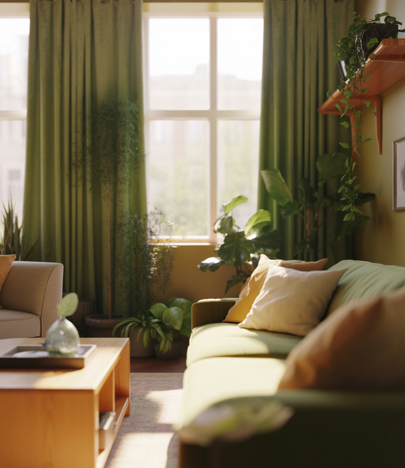 In 2026, olive and soft sage green curtains, echoing trends seen in previous years, remain the most popular choice with nature-inspired fabric selections for living rooms. Long panels made of green curtains create visual calm and, when used with wooden materials and neutral upholstery, are a great choice to ground a living space.