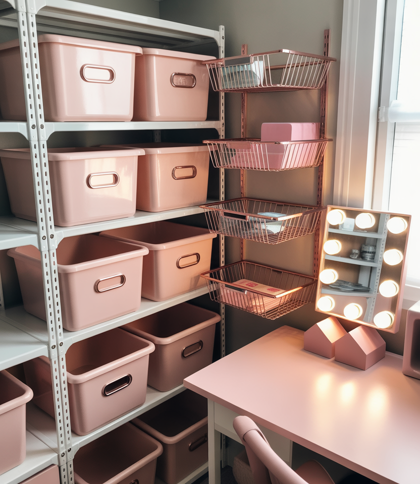 19. Light Pink Storage Solutions With Glam Touches